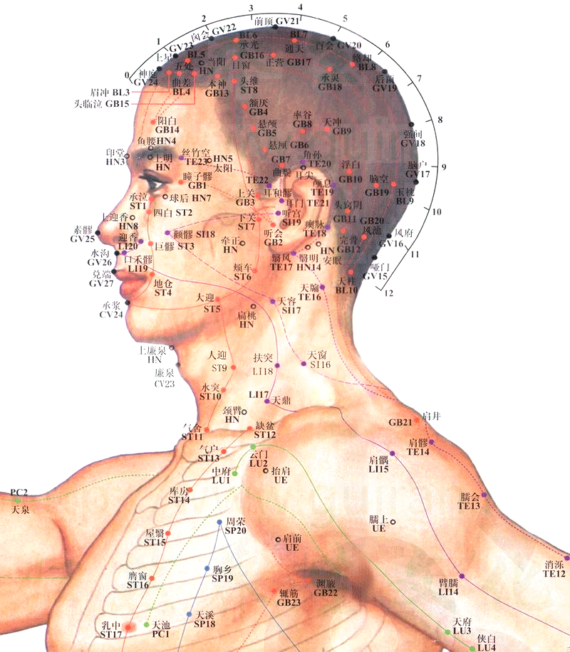 4)中肩、偏肩、肩尖。中,指本穴位于大肠经经脉之中部。中肩、偏肩、肩尖皆为对穴所处的位置的指示,无它意。