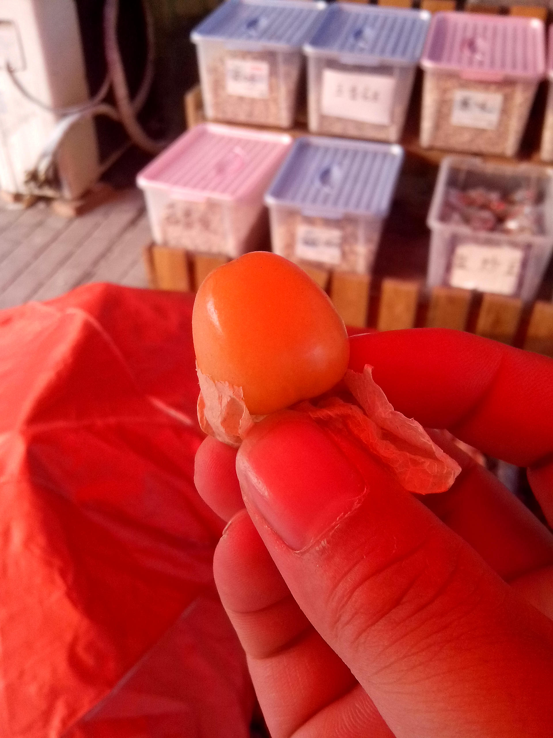 【原形态】一年生草本,高50厘米左右。茎微卧或倾斜,多分枝,具细柔毛或近光滑。单叶互生;叶片卵圆形或长圆形,长2~8厘米,宽1~5厘米,先端短尖,叶基不等,全缘或波状,或具有不规则的缺刻,上面绿色,近于无毛,下面毛较多;叶柄长1~4厘米,有毛。花单生于叶腋;花柄长约5毫米;萼钟形,绿色,膜质,5裂,有硬毛,结果时萼增大如灯笼状,直径约1.5厘米,包围在果实的外面,具有突出的5棱;花冠钟形,5裂,淡黄绿色,长约8毫米,近冠管基部有斑块;雄蕊5,着生于花冠管的基部,花药长圆形;雌蕊1,子房圆形,2室,胚珠多数,花柱线形,柱头头状,呈不明显的2裂。浆果圆珠形,黄色,直径约1厘米;种子多数,扁圆形,绿白色。花期6月。果期7月。