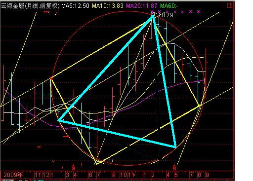 我苦思数天,方破解此图。特举例说明,言语尽在图中。因前一段从8月22日云海金属10.02元开始操作至9月15日14元多,对此股熟悉,故举之绘图说明,以飨读者。