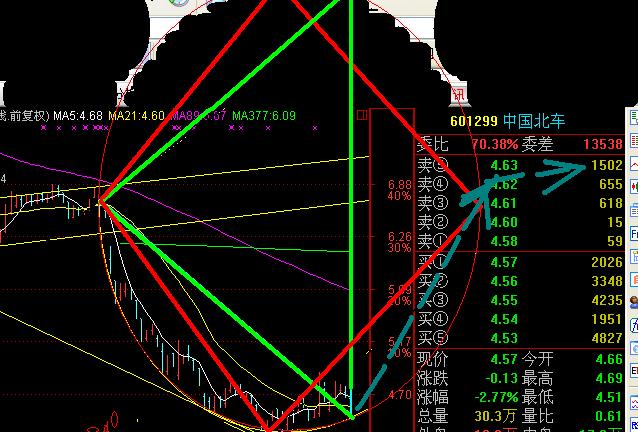 我今日满仓中国北车,可随手画出此图后,我感到震惊!我想希望明天开始,有一个20个交易日的反弹。不能做月线,但可做周线,日线,会有结构性的机会。