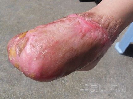 2、外伤伤口、粉碎性骨折、开放性骨折,皮损;经西医抗菌治疗,出现皮肉变黑坏死现象,医院建议截肢的;二十多年来,每年都有几例这样的患者在我点治疗,虽然有的病人留下残迹,但均成功的保住了残肢。下面,就这方面,我用最近我们医治一例医院建议截肢的病例,来加以阐述说明。