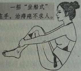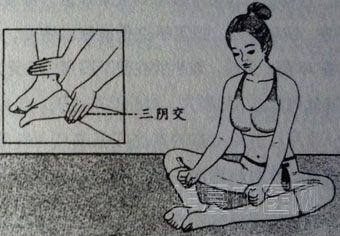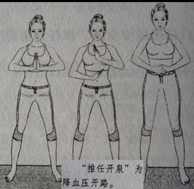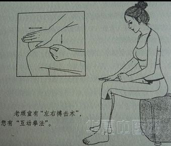 经络方:一只脚站着,另一只脚的中段踩在擀面杖上来回搓动。