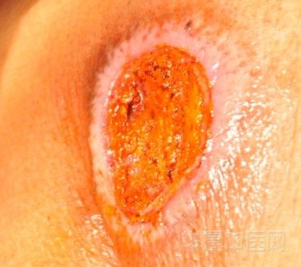 大前天我们从中心医院出来一个老年患者,因是低保户。家里少钱所以院里的朋友就说看能不能帮治一下,因为我以前没有给别人把药用在褥疮上,但治过老烂腿和烫伤化脓的,效果都不错,哪个老人出院的时候医院的护士用双氧水把上面的黑痂给清洁掉了,我当天到他家给他上了我的药,我给你们上一下像片你们看一下,褥疮上在有腐肉边上有黑色和发白无血色的肉