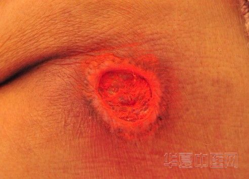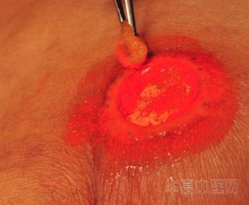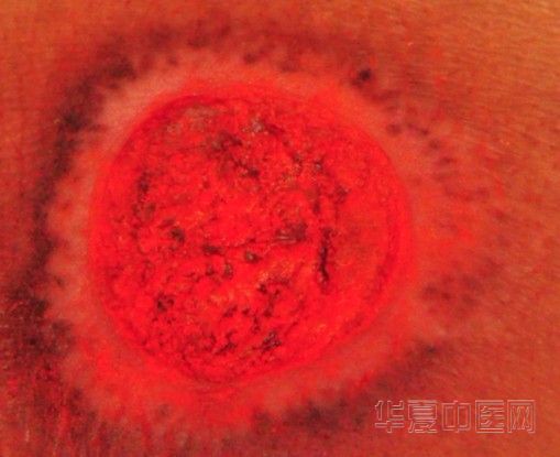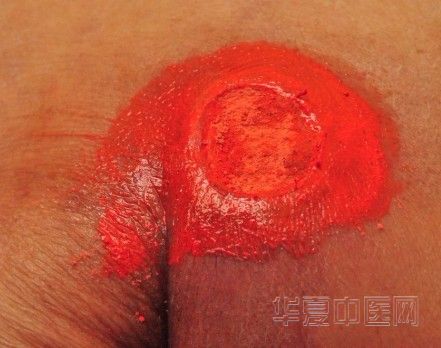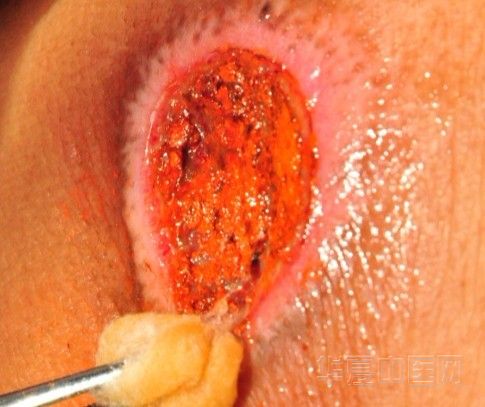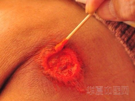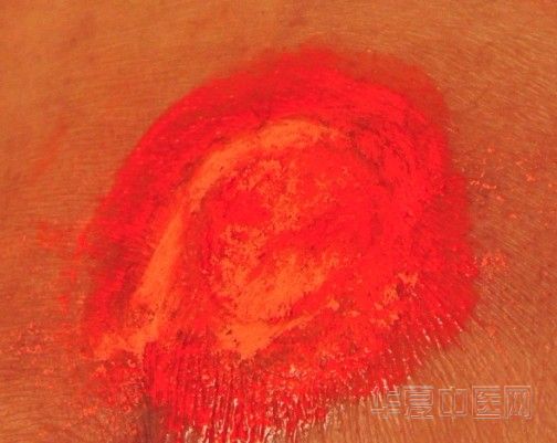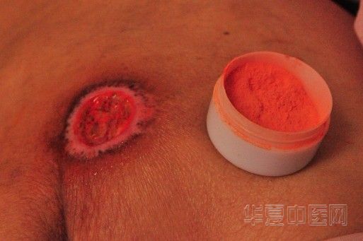 查完后看里面没有什么情况,中间就有药粉上了,因我这个药吸水很好,消肿也特别好,撤上就把里面的油和水份都吸出来了,边上我就有香油调了药粉擦上,晚上给我来电话,说我走后又出来了点水,到晚上又全干了,我让他明天按我今天的方式再给清洁一下,再上药,后天我再去照二天像片发上来,请前辈们看一下效果,因为这个不是厉害的患者呵呵见笑了