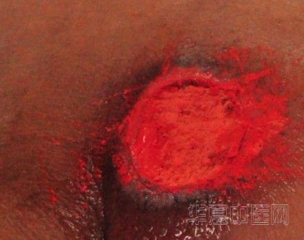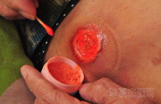 今天我到老人家去看了一下,呵呵情况比前天要好很多,褥疮的地方都干了,但我怕里面还有湿的腐肉,让他用香油涂上,把我的药给泡一下,把哪块给泡软点,去掉上面的药看一下里面的情况, 但呵呵边上以前发白的皮肤,现在红了,有血肉色,主要是患者不痛了,不像前天没有上药以前,老和家人说痛,现在不痛了呵呵 情况好转