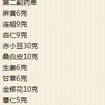大 大隐 声名鹊起 正式会员 注册 2012/06/13 帖子 302 获得点赞 4 声望 0 2012/07/23 #4 麻黄6克,连翘9克,杏仁9克,赤小豆30克,大枣12枚,桑白皮10克,生姜6克,甘草6克 薏仁15克 金银花10克