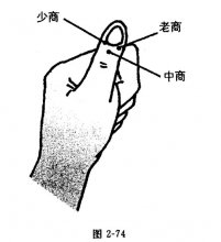 三商穴为少商、中商、老商三穴。中商在拇指爪甲正中根部下一分许处;老商在拇指爪甲角尺侧一分处。