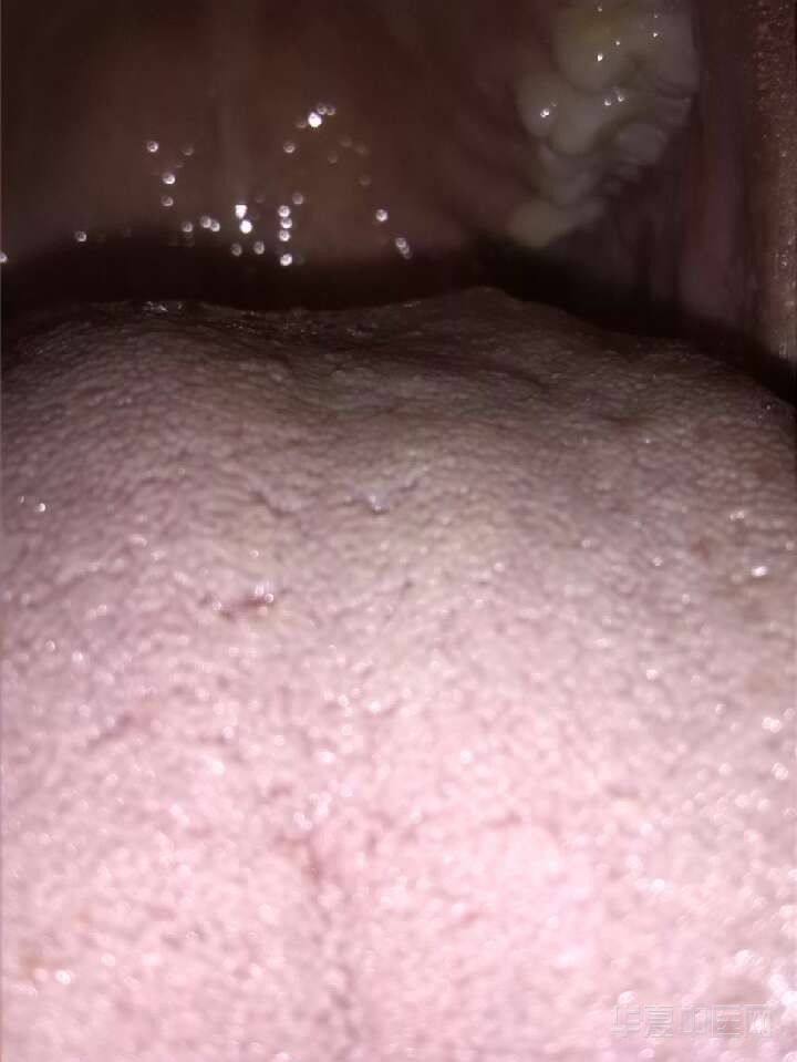 下面是舌象 早上的 吃过早饭会好些 舌根有红点