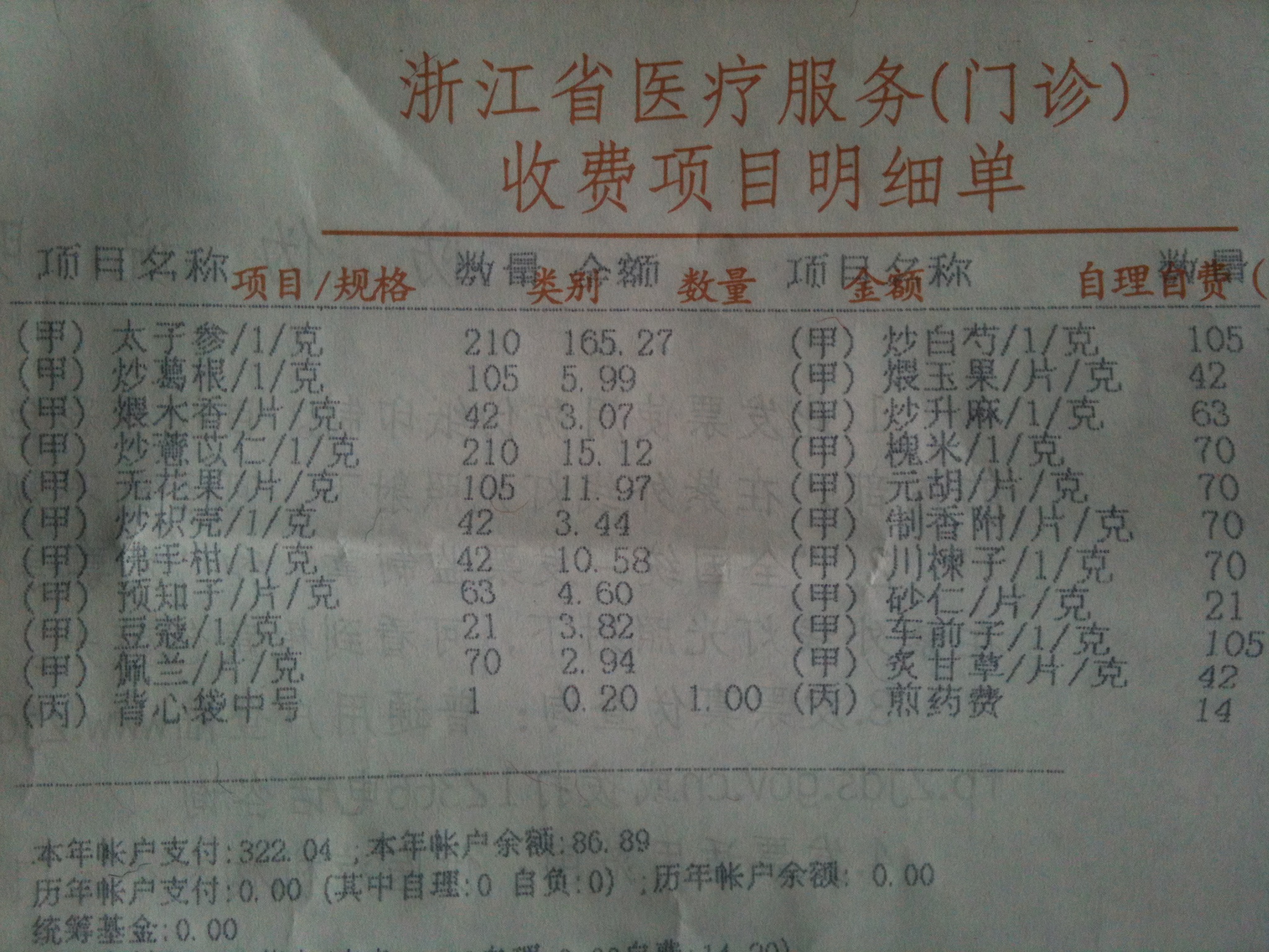 这医院抓药是挺贵的,你的账户余额就剩86.89了。下次悠着点花吧