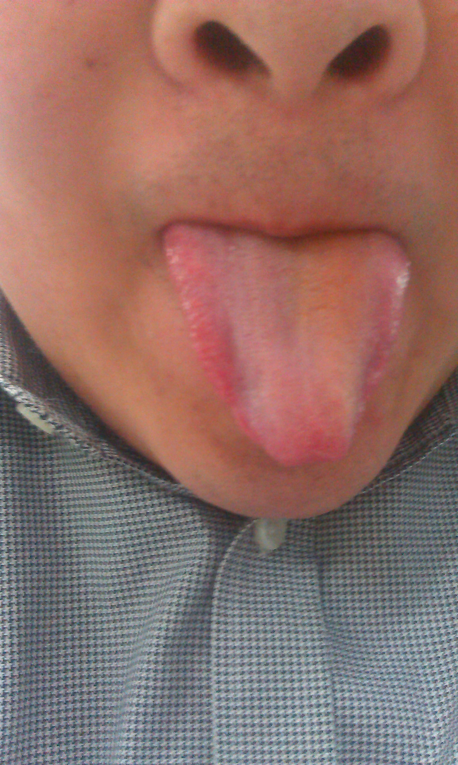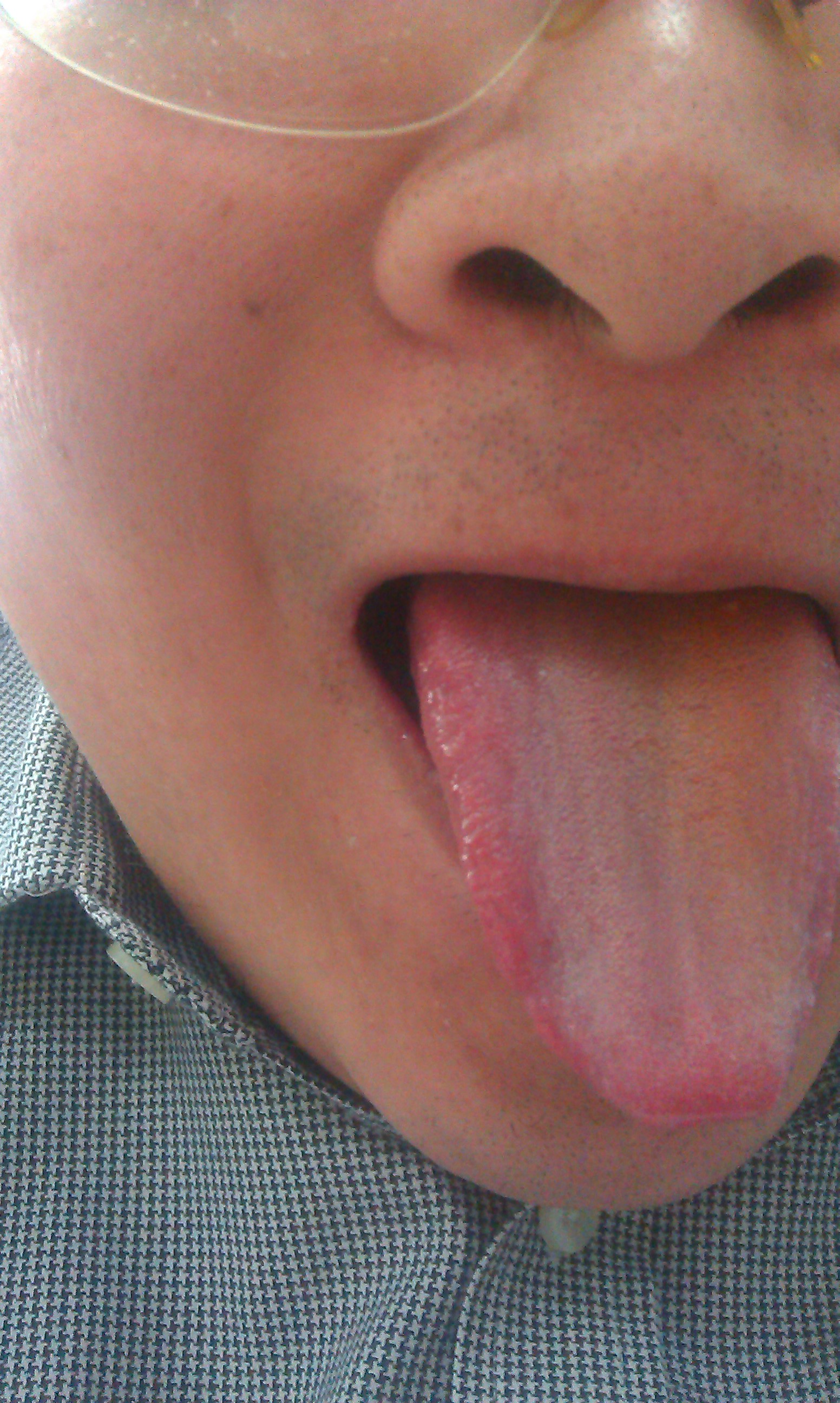 下面发一个我今天的舌像(奇怪怎么有半边黄的,可能我刚才嚼了枸杞?)