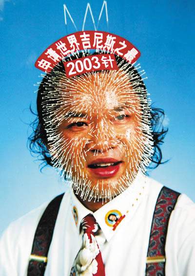 风吹过 惊鸿一瞥 正式会员 注册 2013/09/14 帖子 49 获得点赞 0 声望 8 2013/10/11 #2 本帖最后由 风吹过 于 2013-10-11 02:35 编辑 虽然不是为了治病,可是这位针灸医生经常在自己头上插满针,已经扎成过很多造型了 身体还挺好。