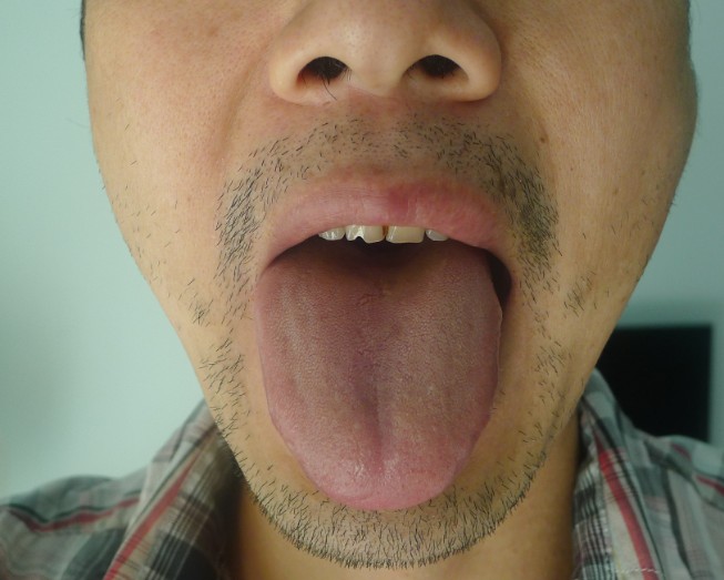 舌像:比较胖,舌红,舌苔黄,有时候是薄黄,有时候很厚
