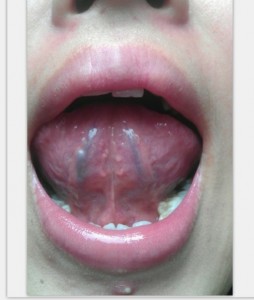 眼象:(白睛颜色:色青,色黄等,有一点无血丝?有无瘀斑?有无黑点?有无干涩,胀感,眼下颜色):深,疲倦