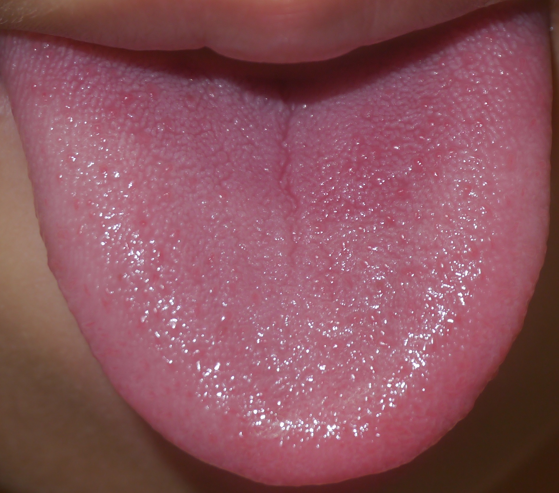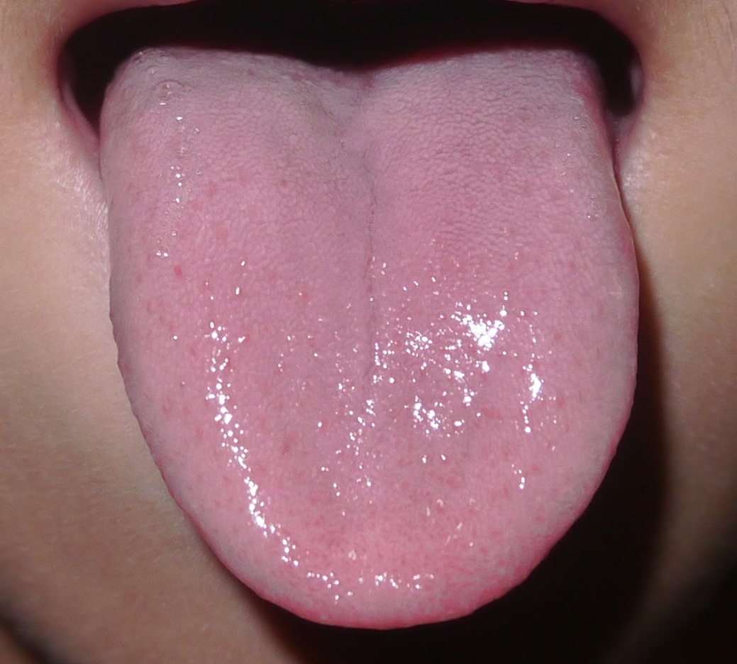 舌大,舌质红,津液盛!舌上有红点!湿热错杂!