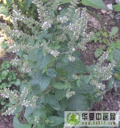 性状鉴别 全草长15-80cm,多分枝。茎方柱形,直径2-8mm,表面灰绿色至棕褐色,被短柔毛,断面类白色,中空。叶对生,常脱落或破碎,完整叶多皱缩或卷曲,展开后呈长椭圆形或披针形,长1.5-6cm,边缘有圆锯齿或钝齿,背面有金黄色腺点,两面均被短毛;叶柄长0.4-1.5cm,密被短柔毛。轮伞花序顶生或腋生,花序具花2-6,含集成多轮的假的总状或穗状花序;花冠的顶生或腋生,花序具花2-6,集成多轮的假总状或穗状花序;花冠多脱落;宿存花萼钟状,长约3mm,灰绿色或灰棕色,前面有金黄色腺点及短柔毛,内藏棕褐色倒卵圆形的上坚果。 显微鉴别 叶表面观:上表皮细胞呈不规则多边形,壁较平直;下表皮细胞略小,壁弯曲。气孔直轴式为主,以下表皮为多。上下表皮均有多数非腺毛,由2-3细胞组成,长116-160μm,基部的细胞膨大,直径约40μm,上部细胞缢缩变狭而渐尖,外壁有小刺状突起。非腺毛基部附近的表皮细胞壁常增厚。