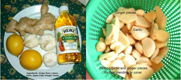 材料: 一个半柠檬二大块姜三头蒜一小瓶苹果醋,蜜糖适量。