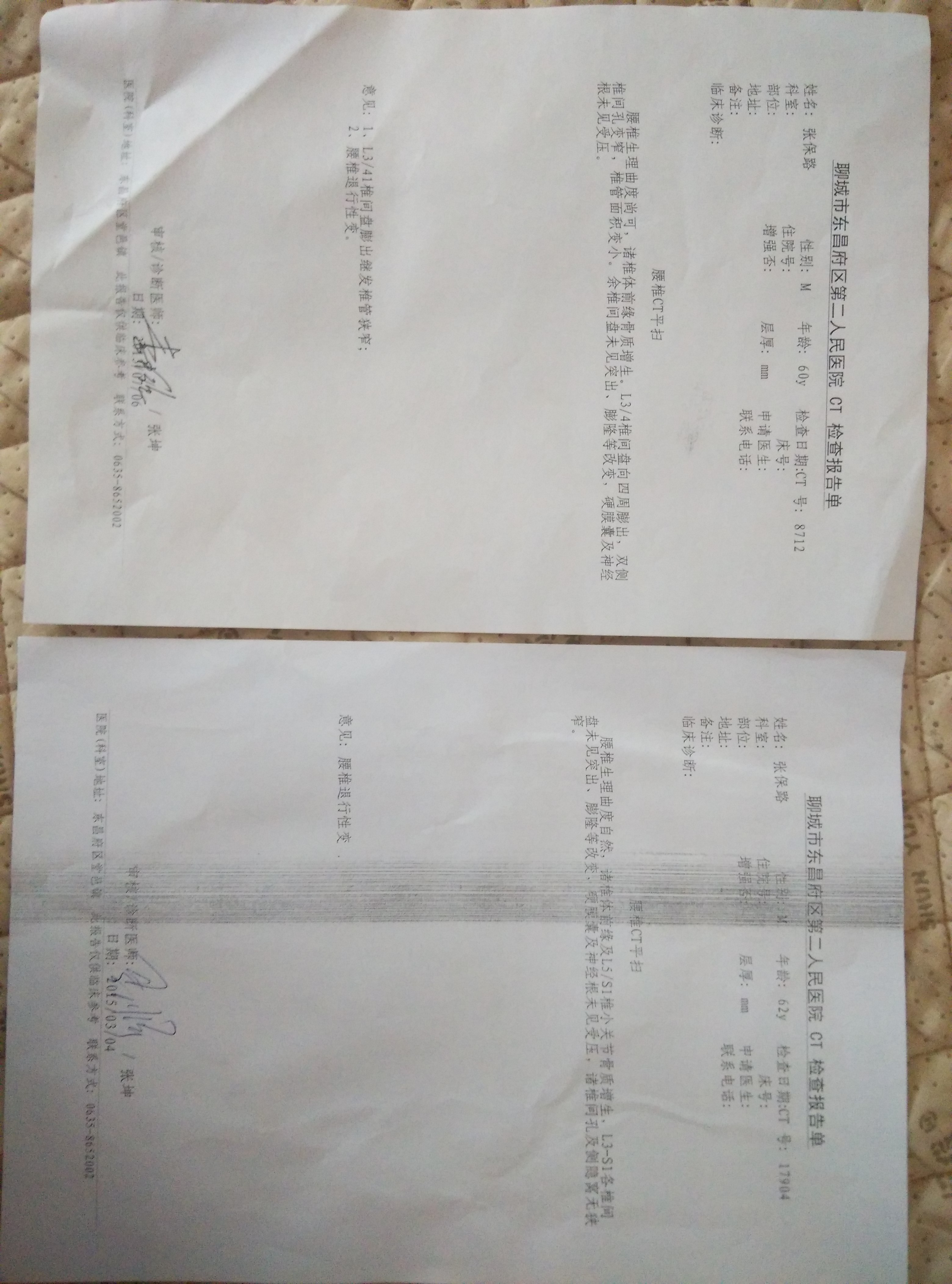 这是某个腰椎病患者的报告单: