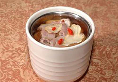 原料:洋葱30克,猪心10个,当归片15克,人参3克。味精,盐适量。