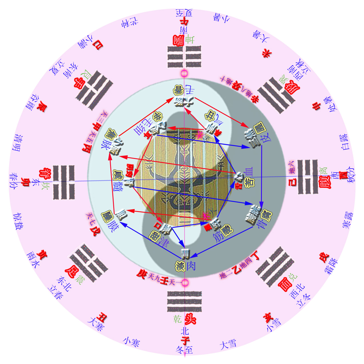 2.图中恢复原先认识肺为华盖,肾为底的认识观。即:地道出口在肾,或者说肾为地道的终点。肾转变为天道开始。