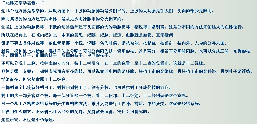 看内经原文,这并不是问题。这是个基本的解剖事实,本不是问题。血脉经络”死可解剖而视之“。