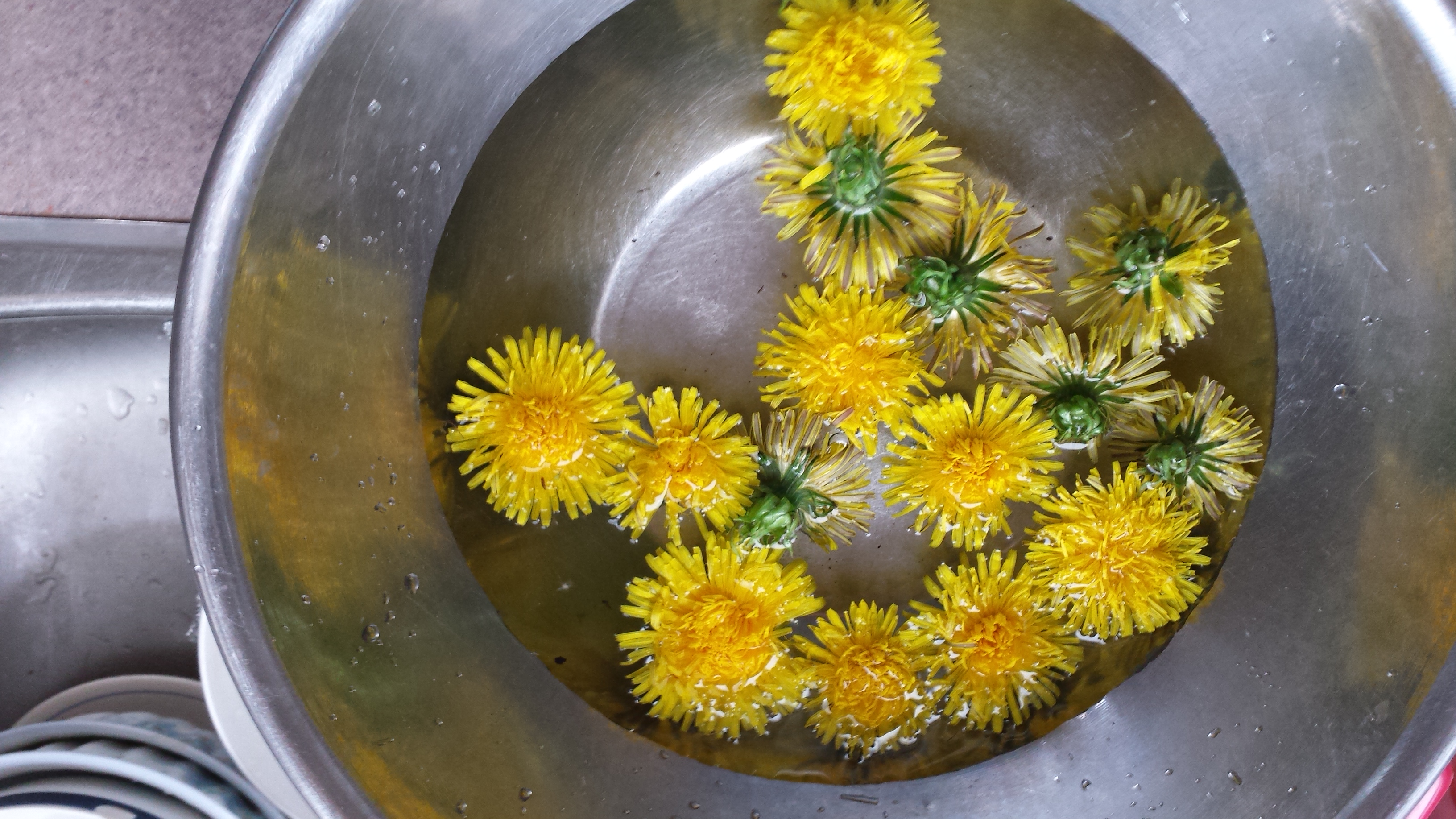1. 将刚采来的新鲜蒲公英花用清水淘净待用。