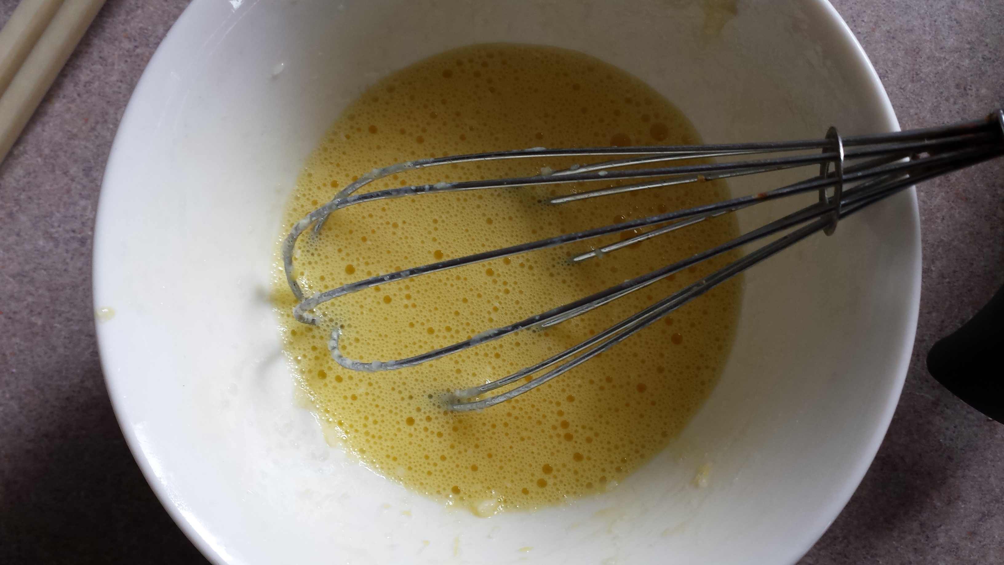 4. 将配料组2的材料放在一起,用鸡蛋抽子打匀。