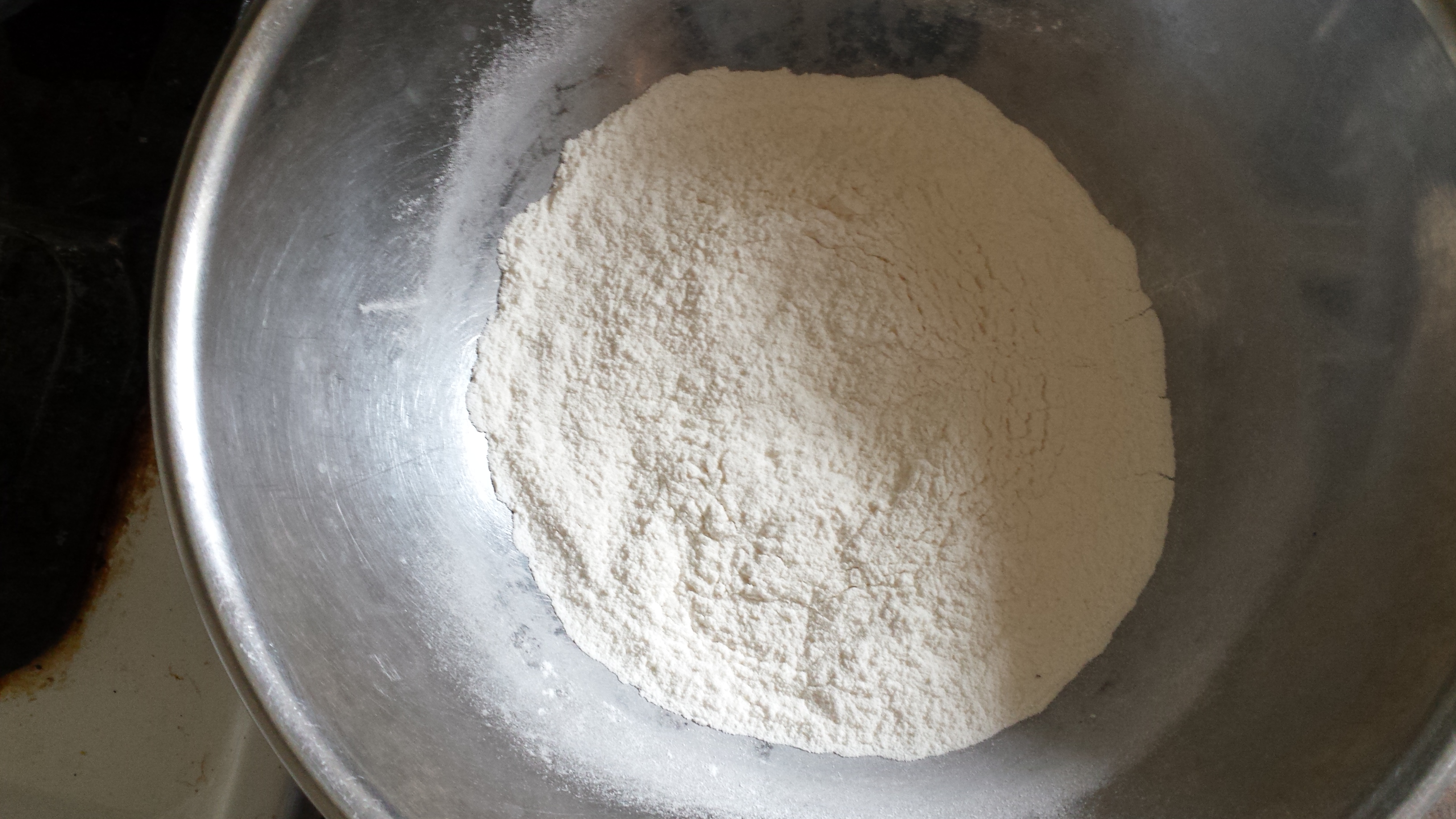 干料 — 面粉:1杯,小苏打:1/2茶匙,泡打粉:1茶匙,盐:1/2茶匙,白糖:2汤匙