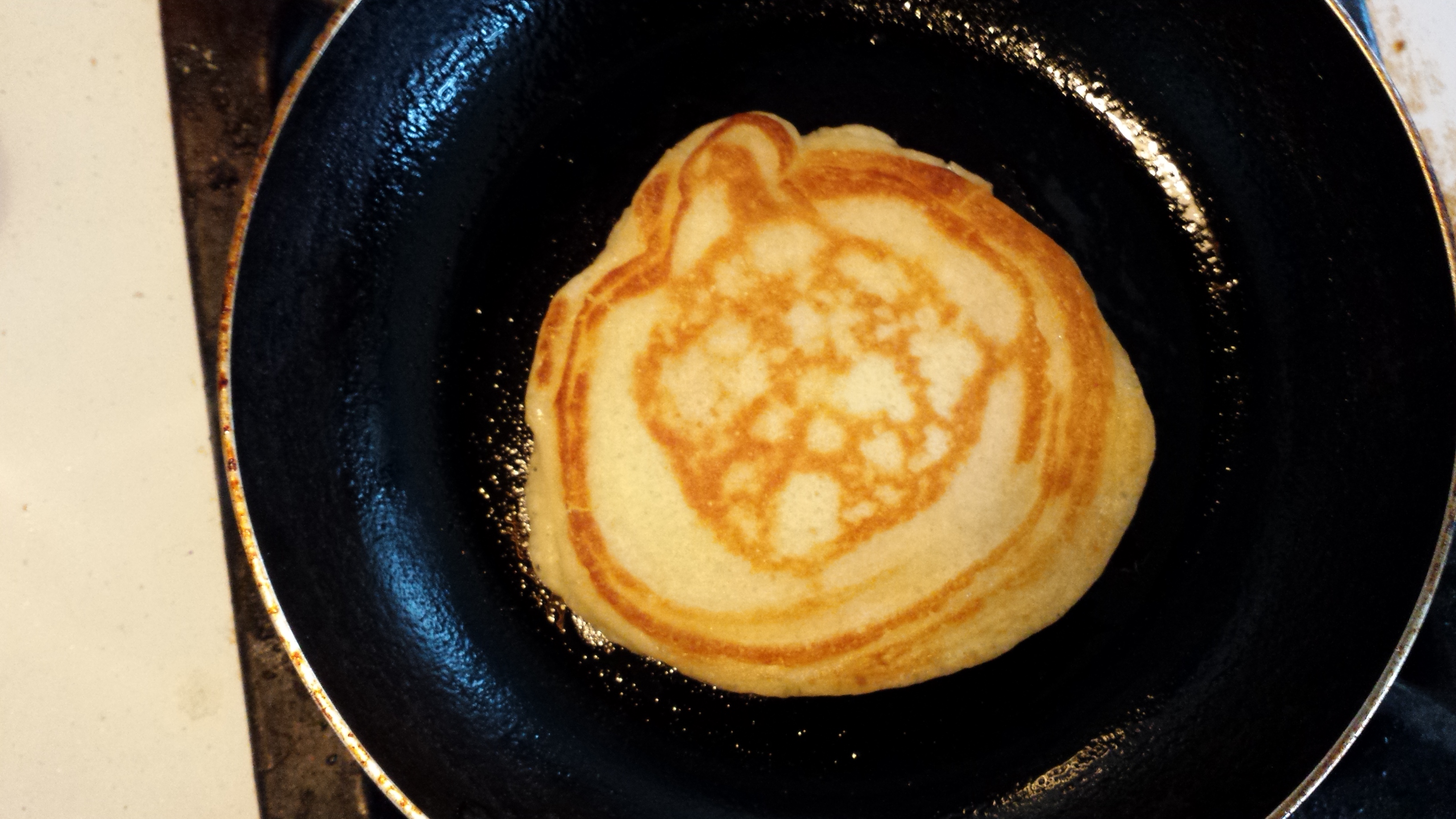 7. 待面饼朝下的一面煎到发黄(不要煎到焦黑哦),将面饼翻过来继续煎熟即可。