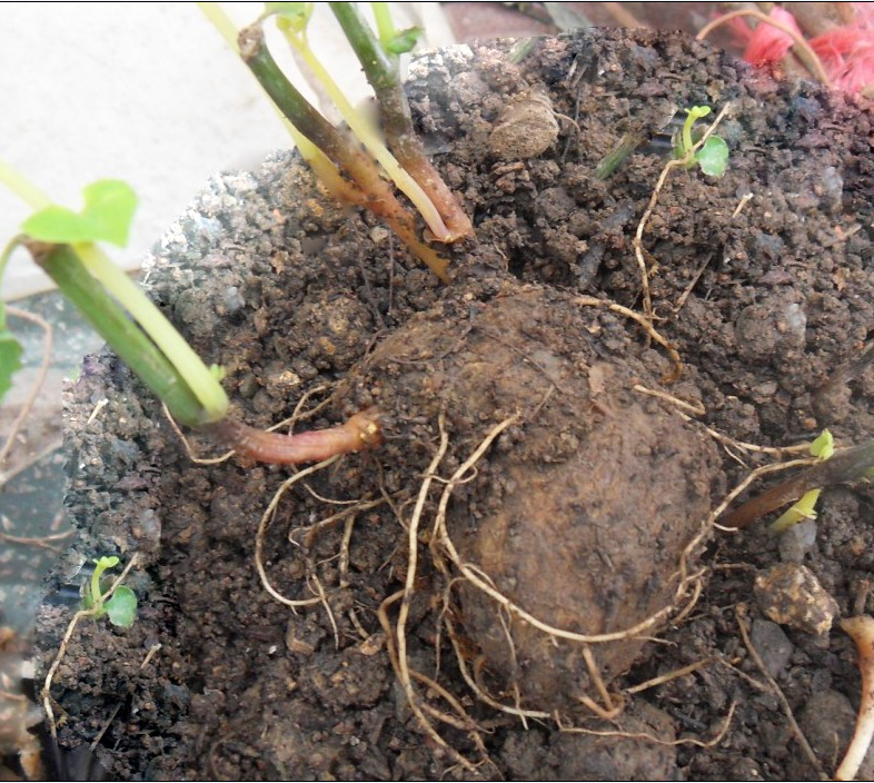 植物形态:多年生藤本。根呈块状,横走,常1-3个相连,幼枝及嫩叶柔毛。叶互生,卵圆形,长4-11厘米,宽3-11.5厘米,先端锐尖,基部心形,全缘。短总状花序腋生,花萼管状,基部膨大呈球形,上部侧向开放呈喇叭状,金黄色;雄蕊6,与花柱结合;花柱6裂;子房长柱状,下位,6室。蒴果下垂,卵状球形。花期冬季。