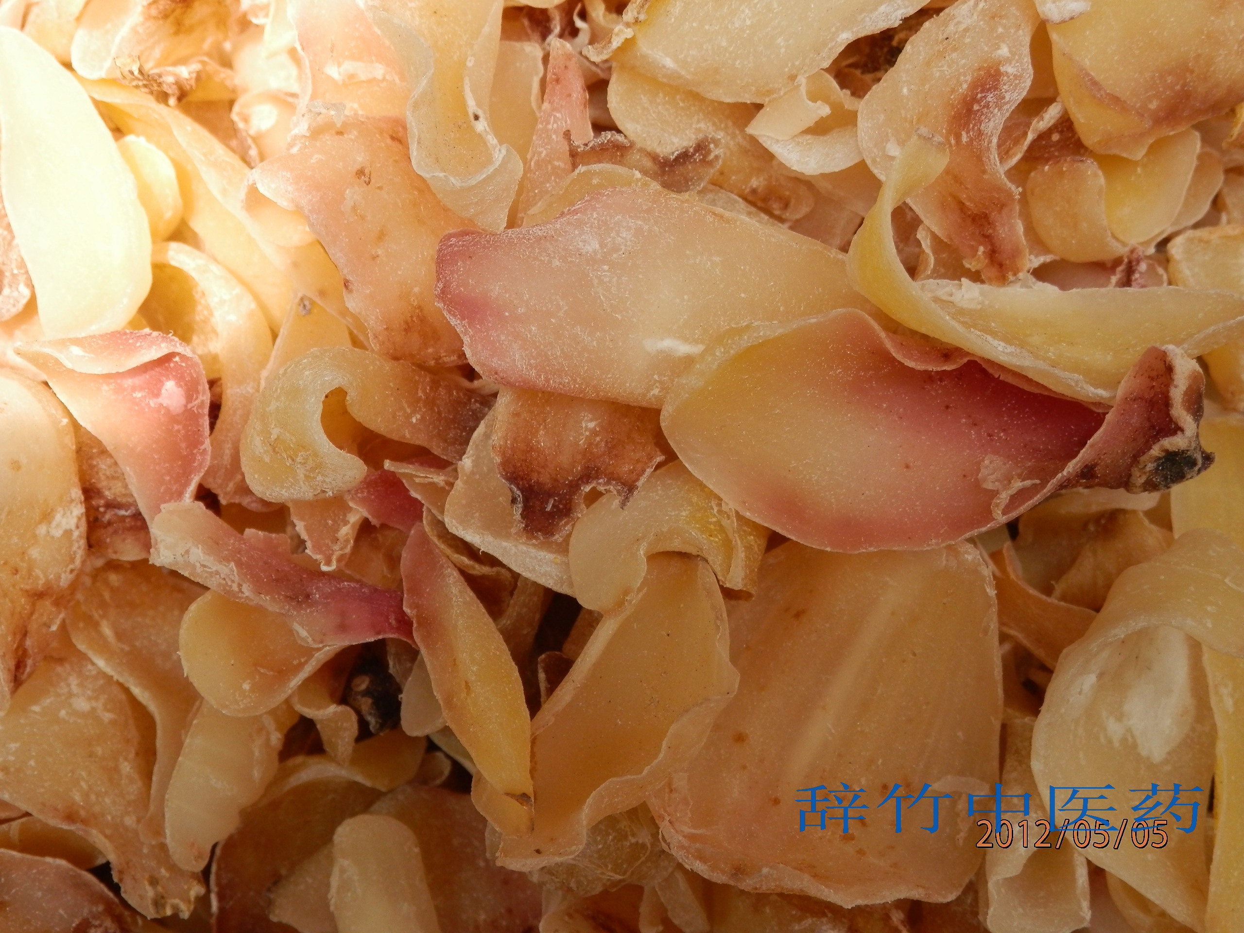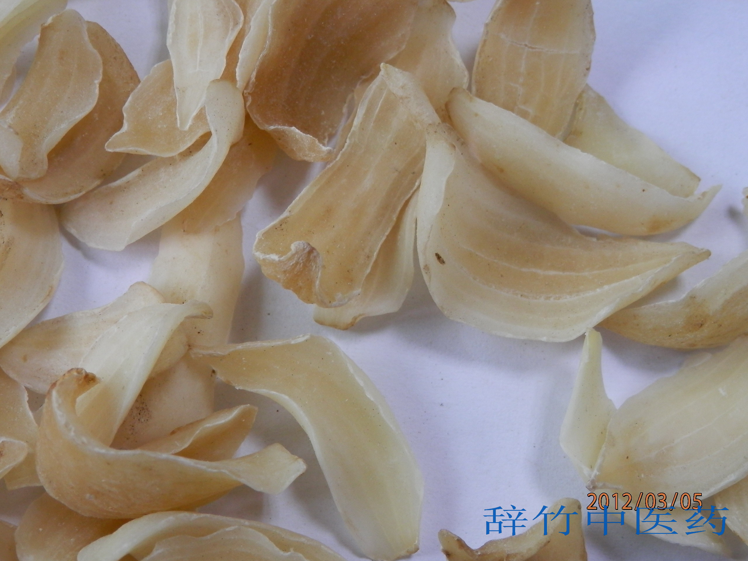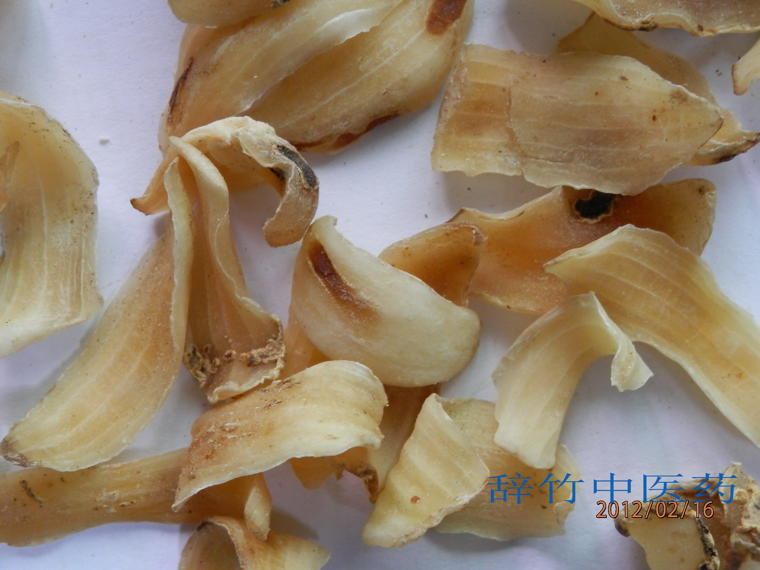 百合是百合科植物卷丹Lilium lanci folium Thunb.、百合Lilium brownie F.E.Brown v ar_viridulum Baker或细叶百合Lilium pumilum DC.的干燥肉质鳞叶。秋季采挖,洗净,剥取鳞叶,置沸水中略烫,干燥。
