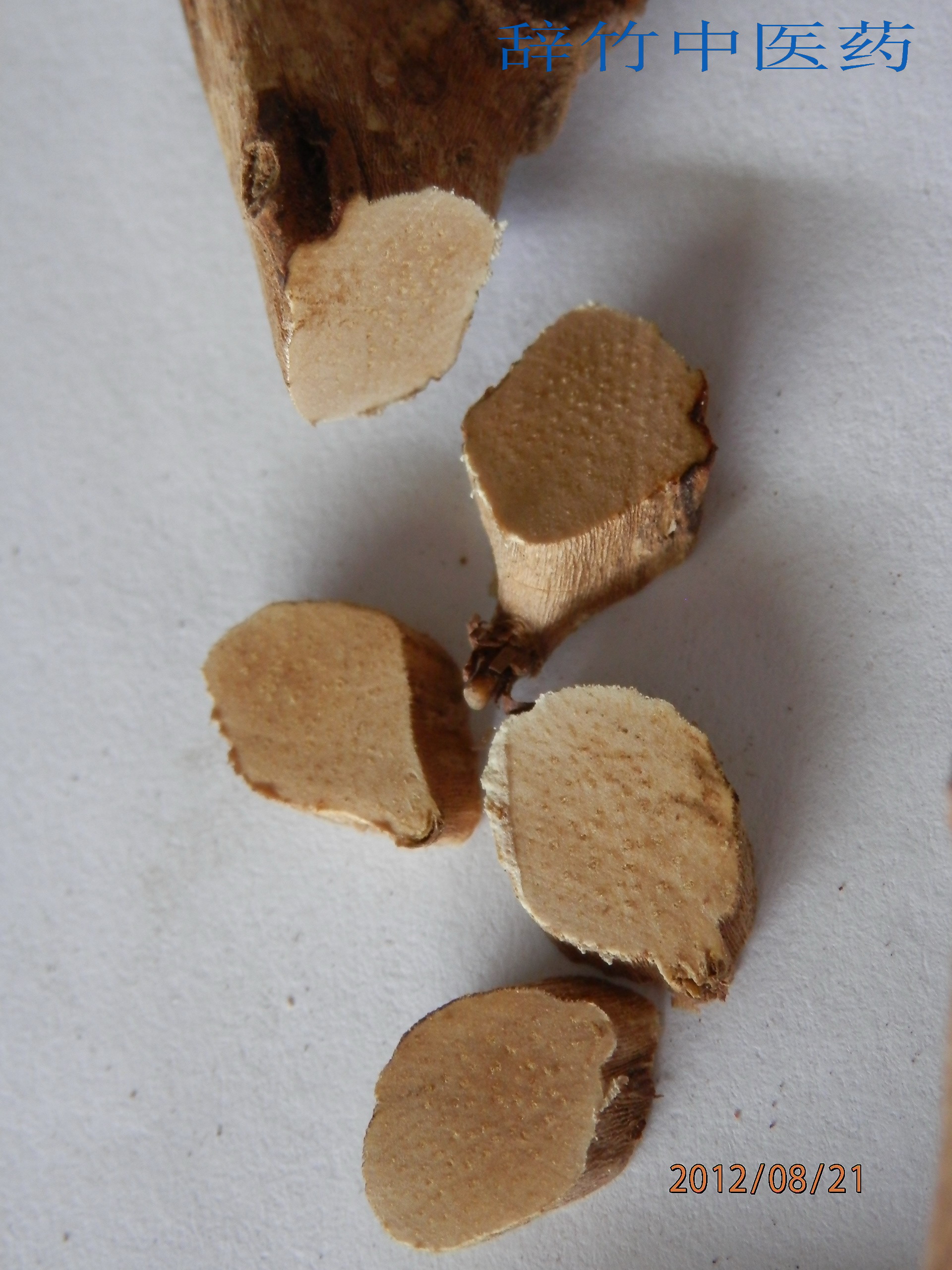 质坚硬,断面平坦,白色或黄白色,散有淡棕色维管束小点。
