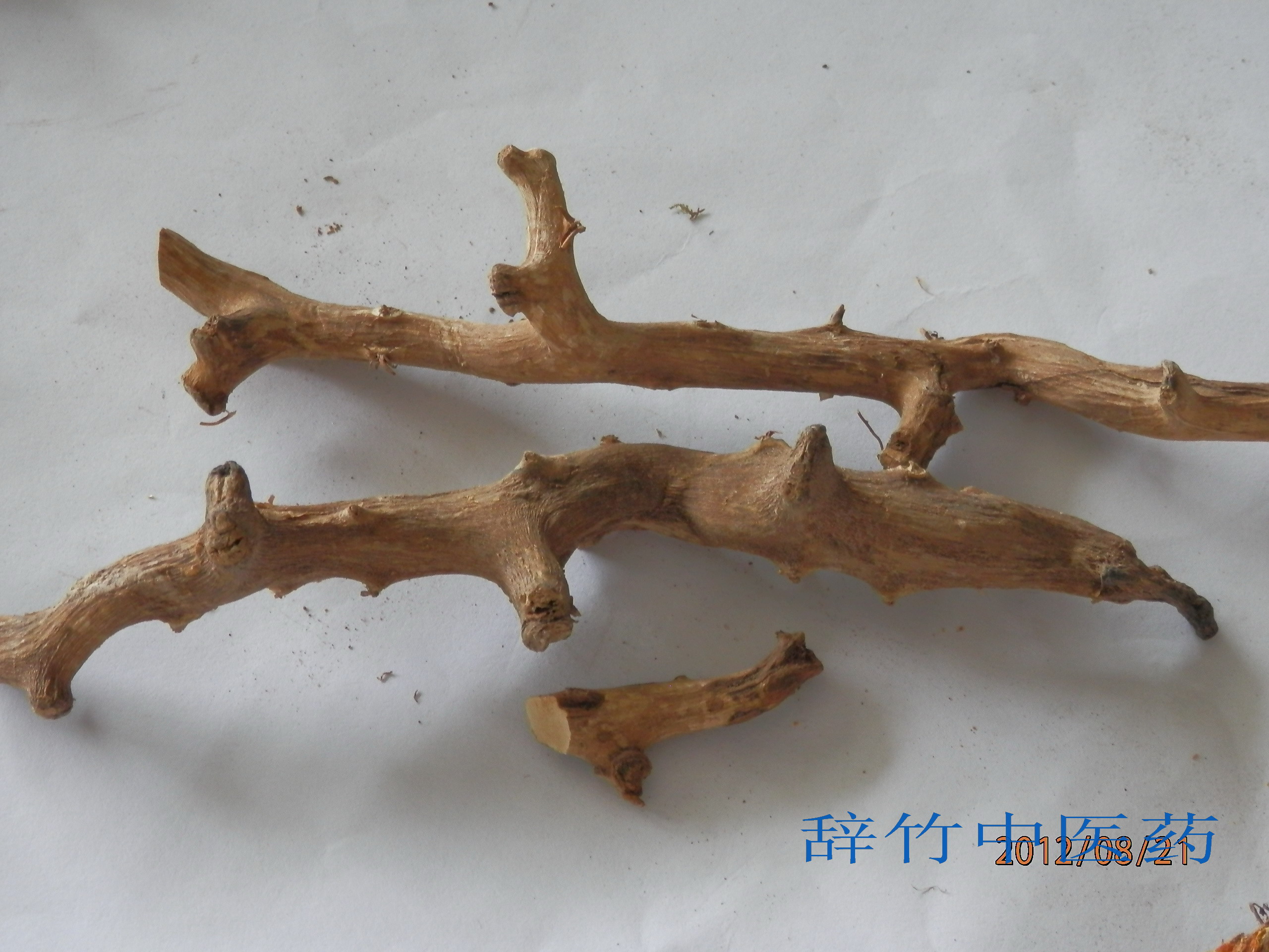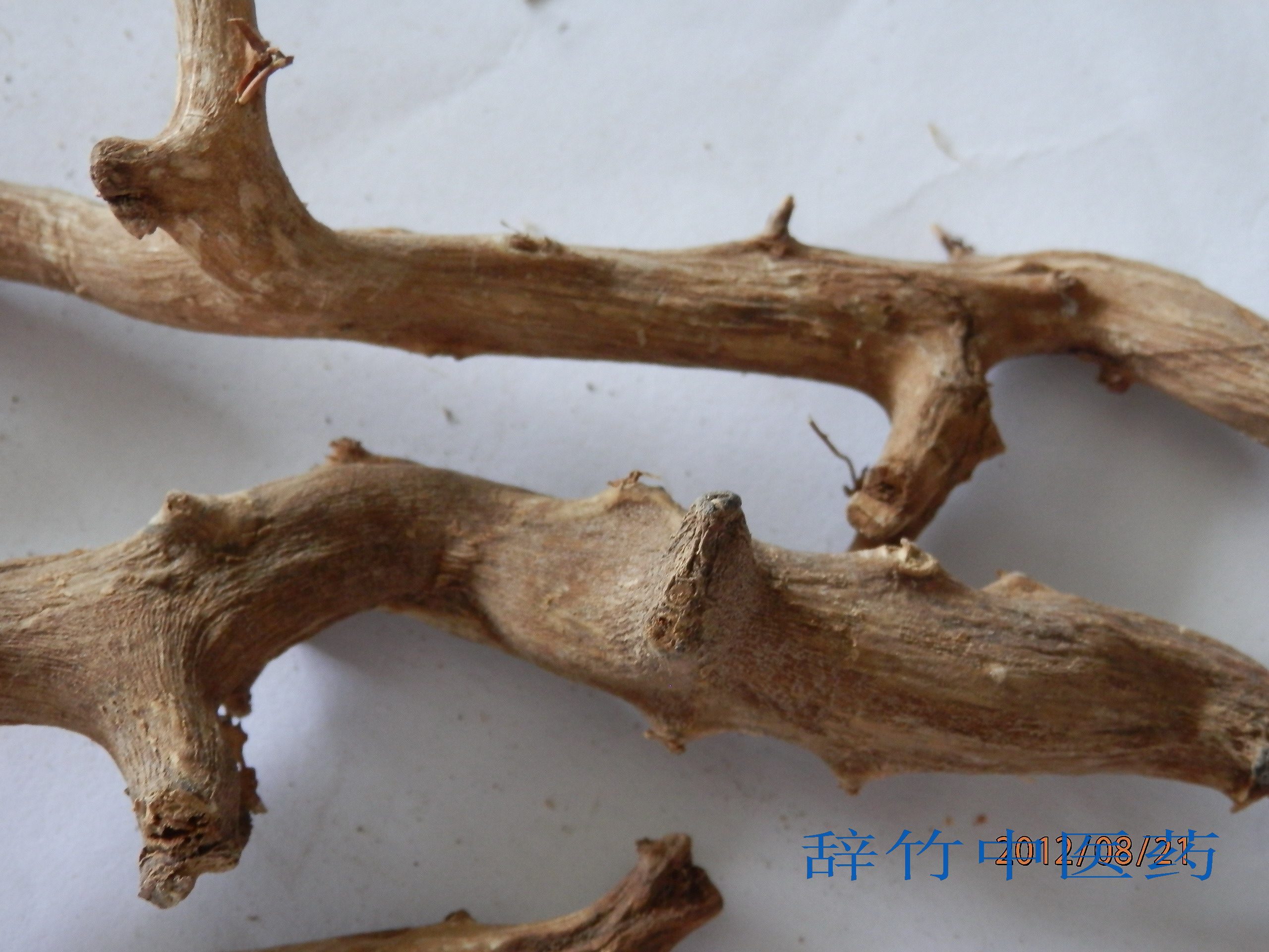 穿山龙有不规则纵沟、刺状残根及偏于一侧的突起茎痕。