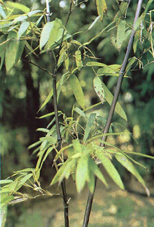 形态 秆高3~5m,直径2~4cm 。地下竹鞭横走,浅褐色 。秆幼时绿色,成长后与枝桠渐变为紫黑色。叶2~3片生于小枝顶端,质薄,长披针形,长3~10cm,宽0.7~1.5cm 。花的各部分较小而具毛茸较多。