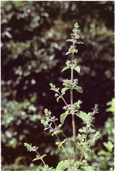 形态 一年生草本,全株有毛,揉之有浓烈香气 。茎方形 。单叶对生,卵形,边缘波状有小齿和缘毛,总状花序腋生;花蓝色; 萼齿5 ,果时增大;花冠唇形;雄蕊4 ,花药汇合成1室 。小坚果卵形,长约4mm 。