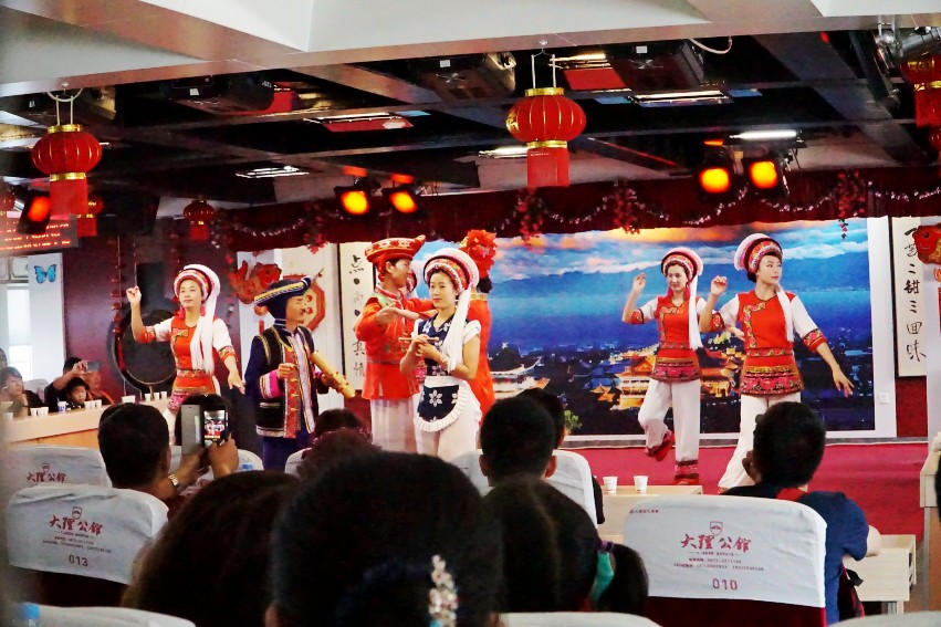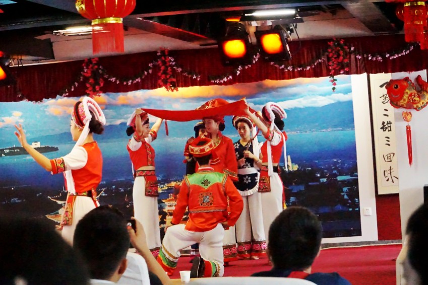 游轮二楼剧场的白族三道茶一苦二甜三回味)文艺表演