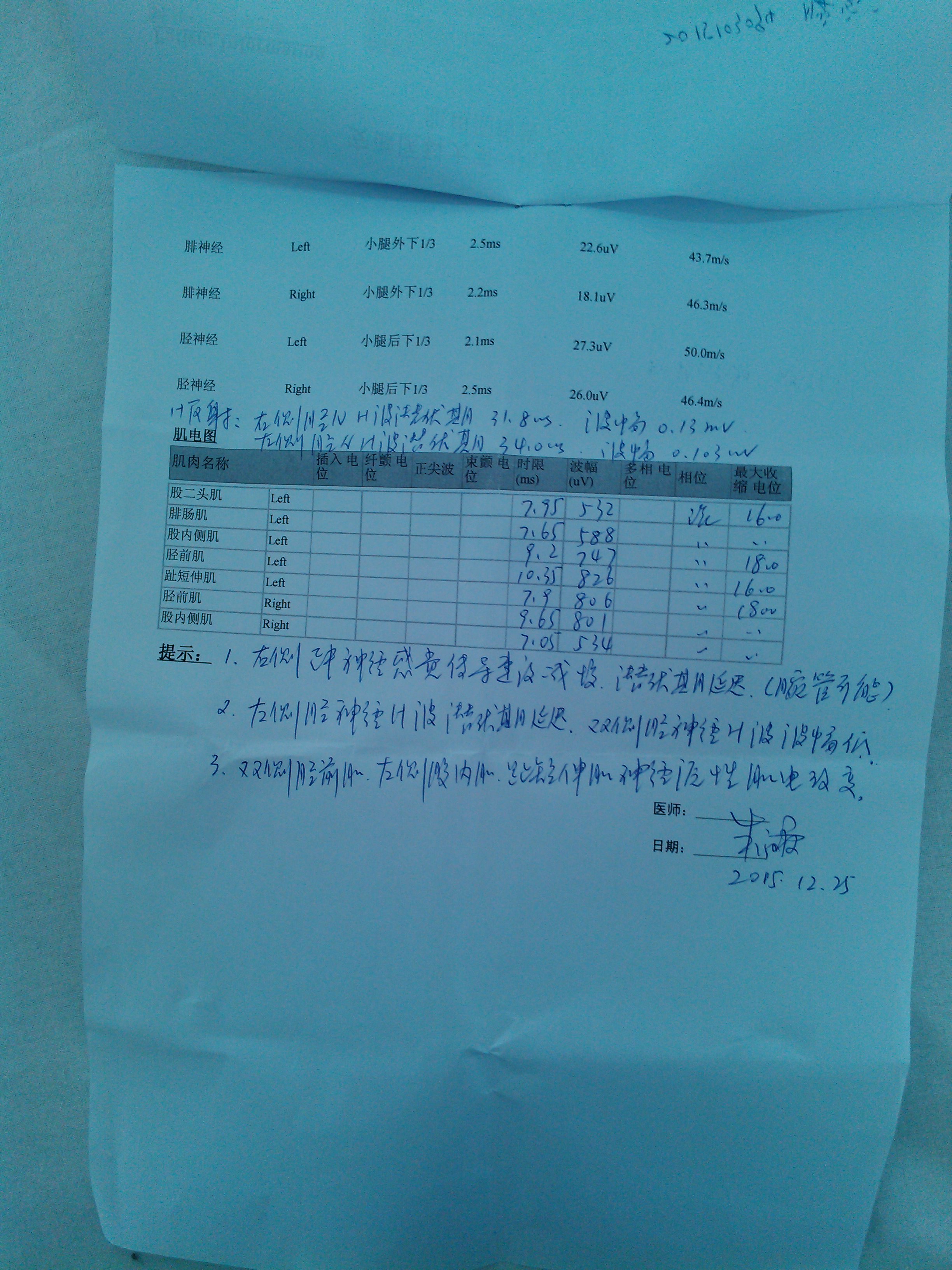 重点不是肌电图,而是确实存在的腿痛问题的解决。要靠好中医