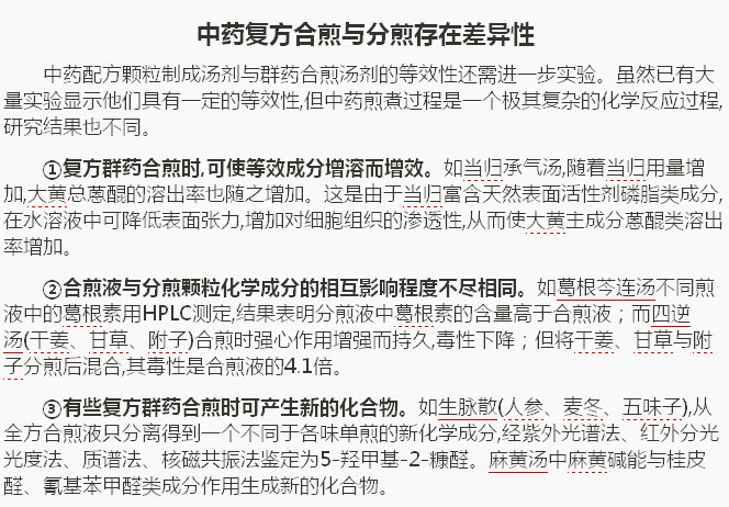 前段小儿(2岁2个月)发烧,除发热外并无太多症状,只是欧尔久久干咳一声。处:麻黄,生石膏,杏仁,甘草,芦根。因为嫌水煎麻烦,就用了中药配方颗粒。服用三次(一付半),发现小儿心跳上升特别厉害,首次服用出汗,后两次均为无汗且温度往上攀升。结合去年患肺炎有一次也是处有石膏,也是毫无降热的作用。怀疑起是不是中药配方颗粒药效的问题。后改方,舍弃配方颗粒,直接上饮片,单独水煎生石膏30克喂服,体温迅速下降。