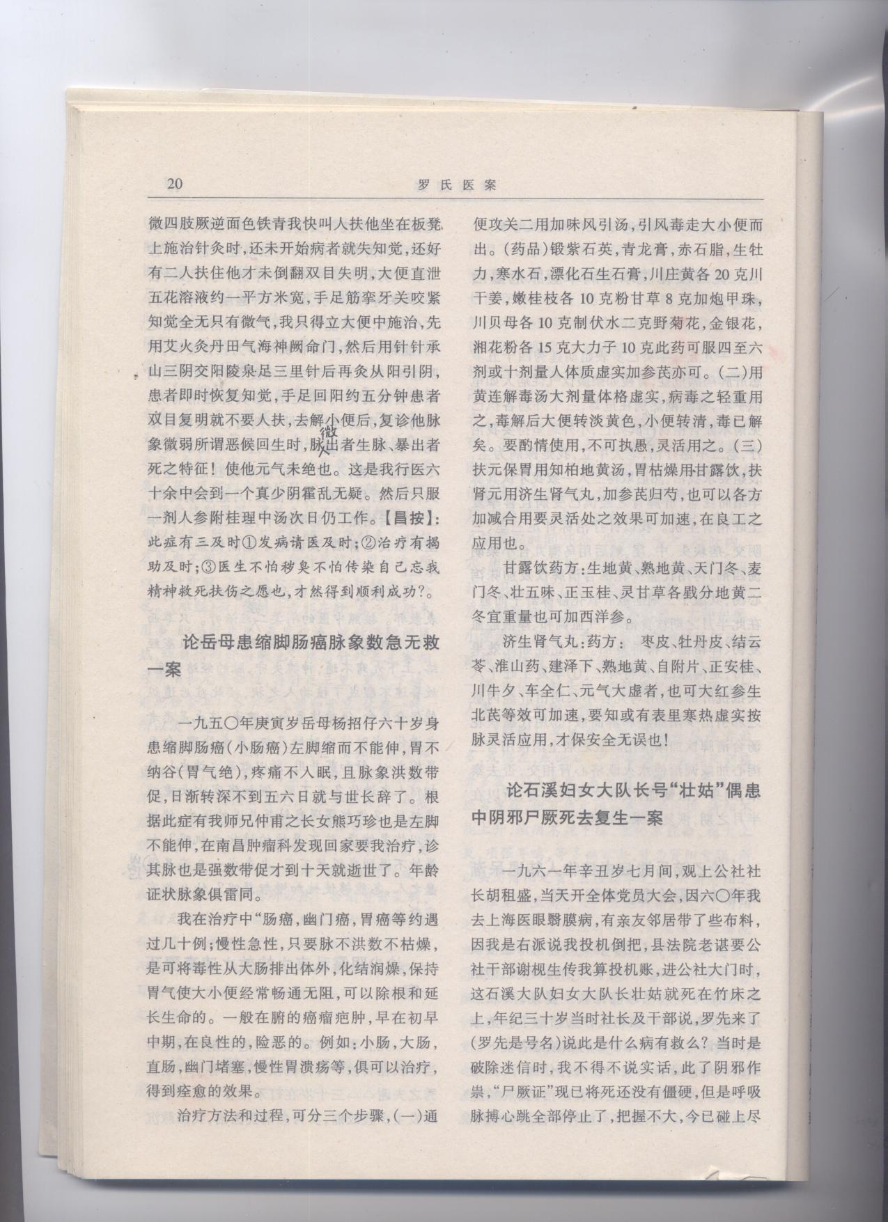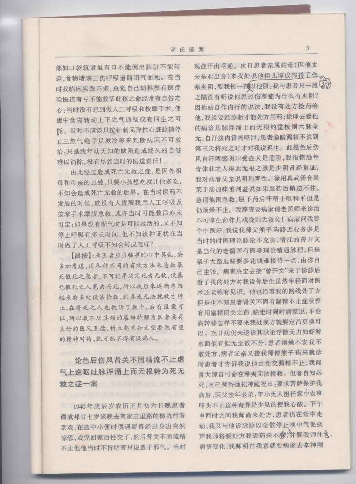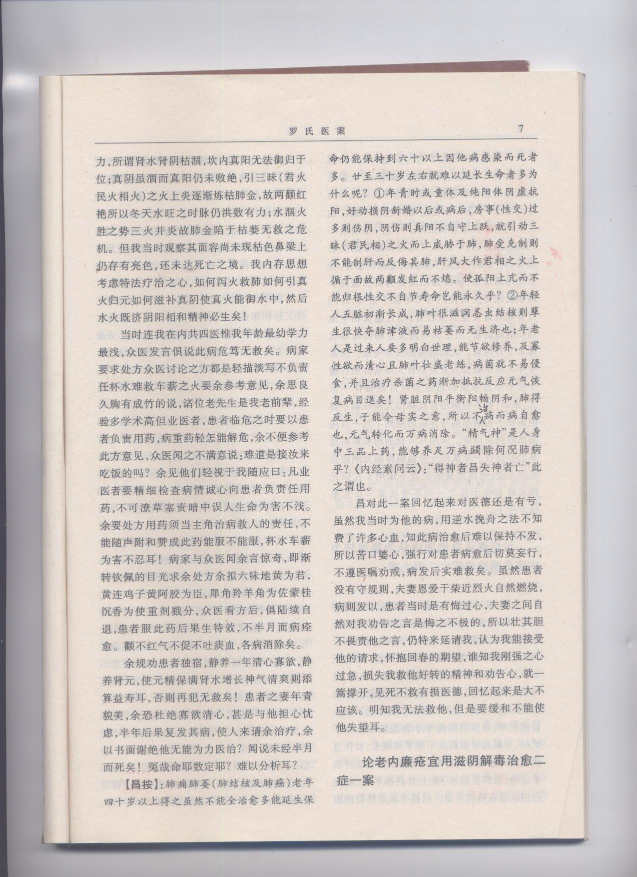 讲他一个医案,有一个搞建筑年青老板商得了淋巴癌,找到他看,罗老把把脉,我朋友陪同去的,就问有救否,罗老说有救,病人元气尚足,开了七剂水药,病人吃了药就开始泻,吃完药就感到神清气爽,马上去找罗老,把脉对症后下药,交钱临时配药,半年服用的大蜜丸带回家服用,并叮嘱清心寡欲,特别是要节欲,保持肾元充足。病人吃完药,跟平常人一样,认为自己彻底好了,搞建筑嘛,又去应酬,花天酒天,仗自己年青,吃喝嫖赌,不到一年,人又不舒服了,马上又去找罗老,罗老把把脉,我那陪同去的朋友(与罗老很熟)就问啥情况,罗老就说没救,病人元气已败。罗老中医尤重病人元气,用药中也多用济生肾气丸,讲此一节,也只说说罗老的治病风格。
