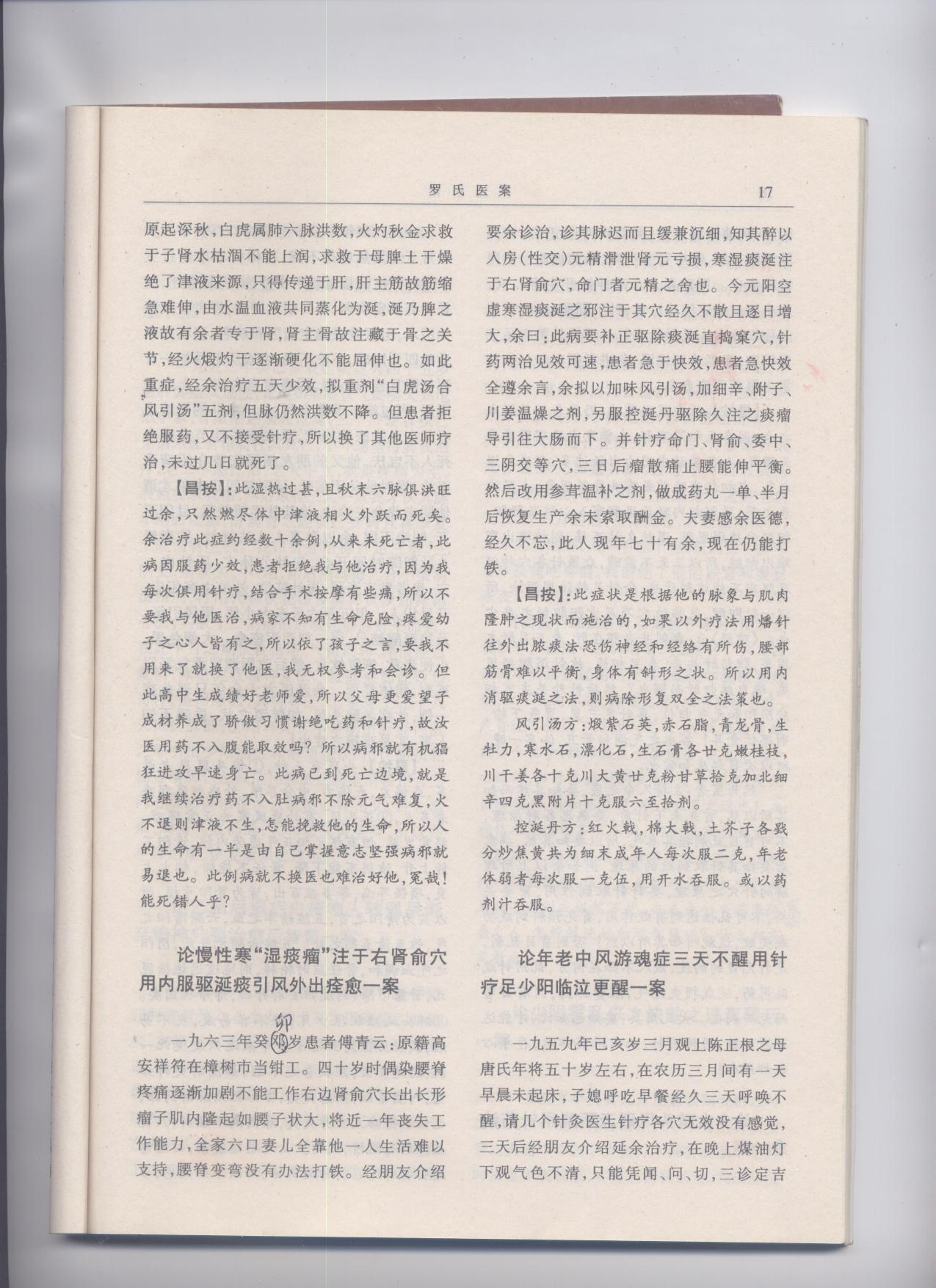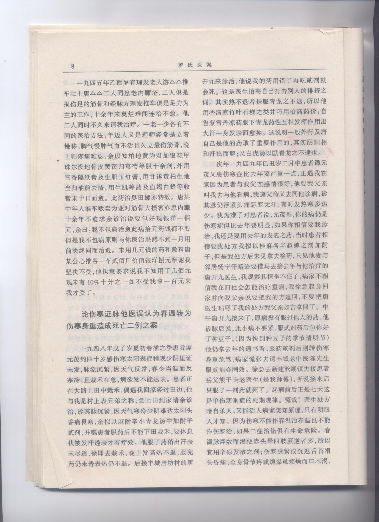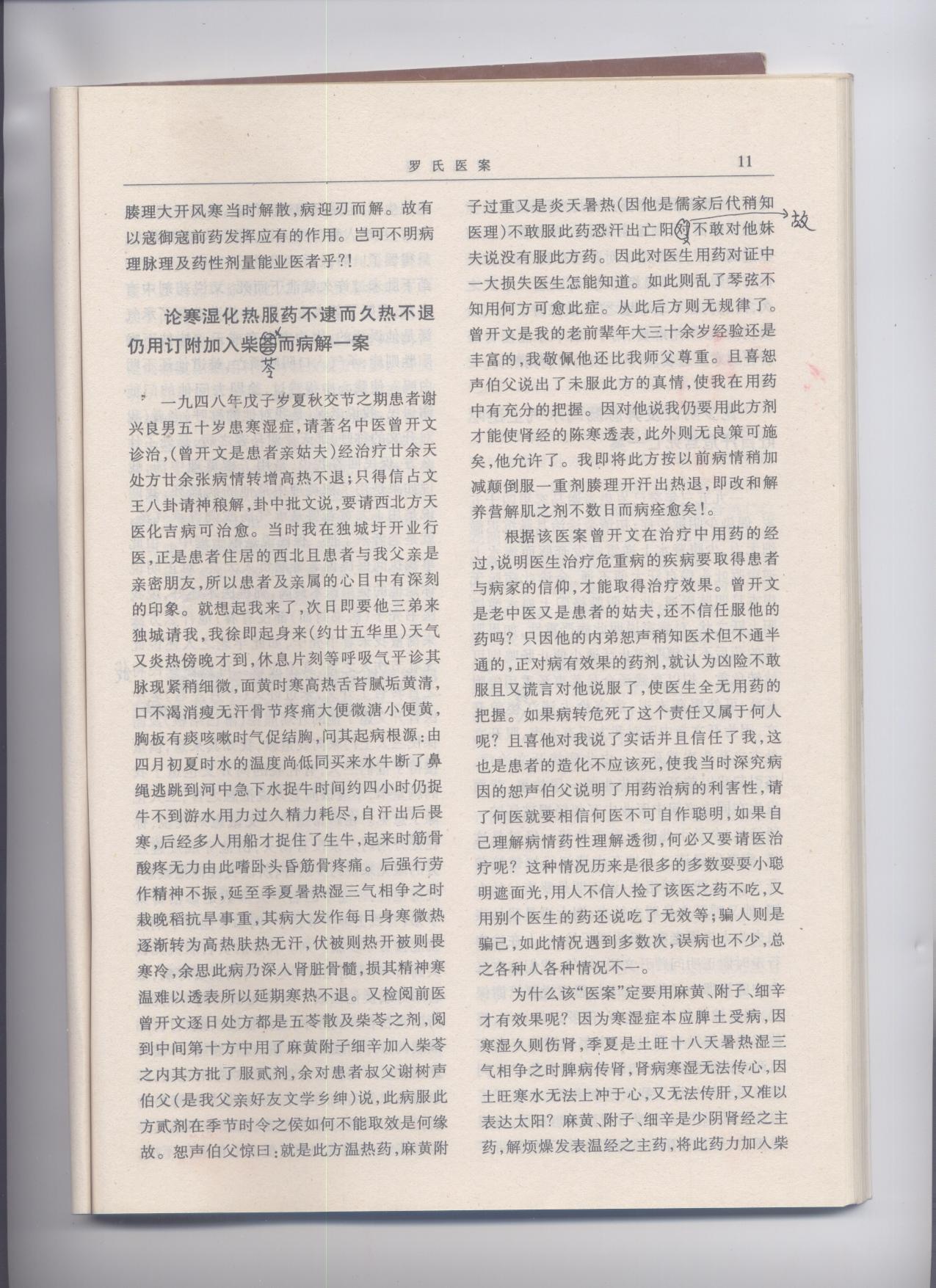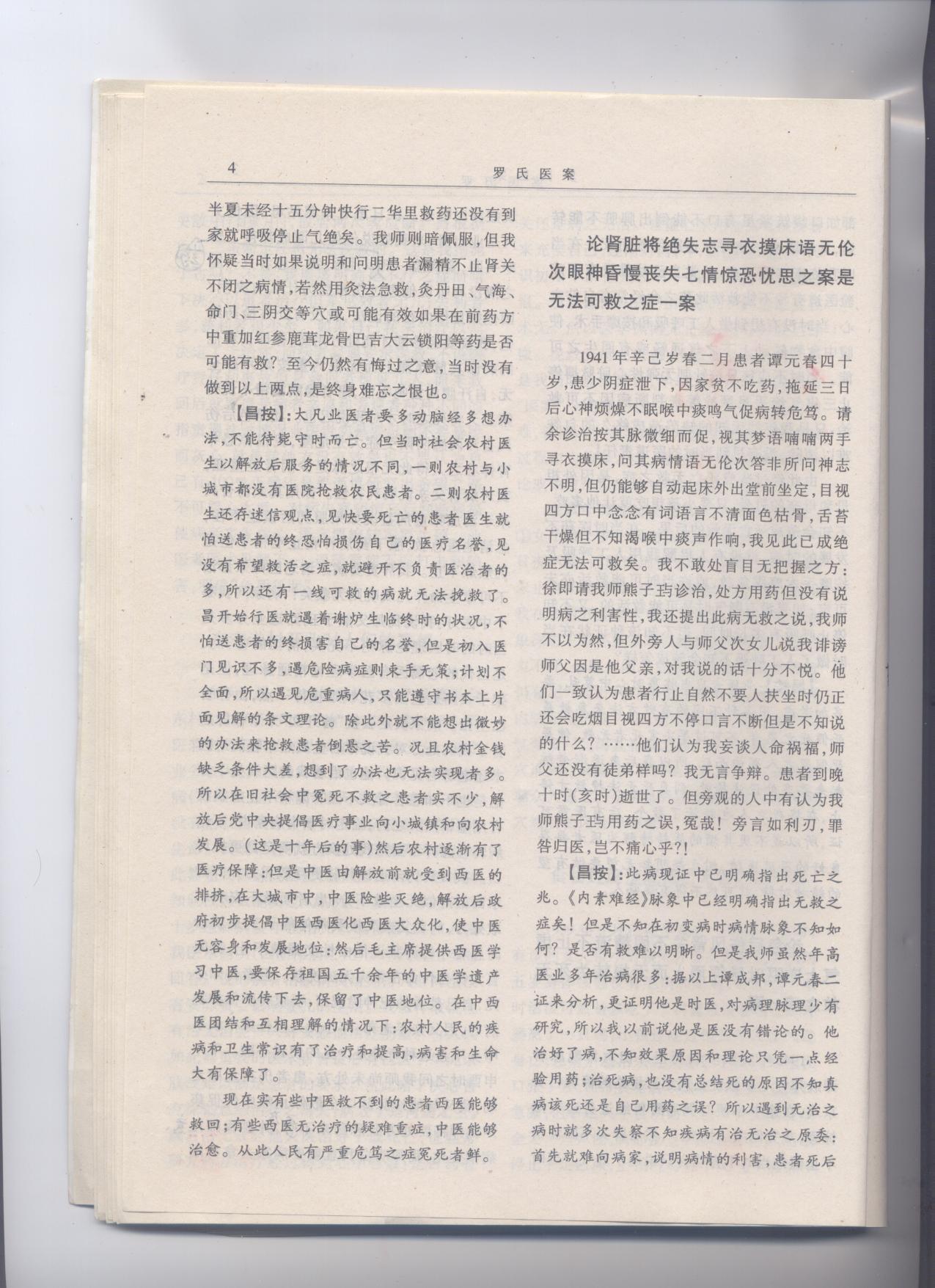 讲他一个医案,有一个搞建筑年青老板商得了淋巴癌,找到他看,罗老把把脉,我朋友陪同去的,就问有救否,罗老说有救,病人元气尚足,开了七剂水药,病人吃了药就开始泻,吃完药就感到神清气爽,马上去找罗老,把脉对症后下药,交钱临时配药,半年服用的大蜜丸带回家服用,并叮嘱清心寡欲,特别是要节欲,保持肾元充足。病人吃完药,跟平常人一样,认为自己彻底好了,搞建筑嘛,又去应酬,花天酒天,仗自己年青,吃喝嫖赌,不到一年,人又不舒服了,马上又去找罗老,罗老把把脉,我那陪同去的朋友(与罗老很熟)就问啥情况,罗老就说没救,病人元气已败。罗老中医尤重病人元气,用药中也多用济生肾气丸,讲此一节,也只说说罗老的治病风格。
