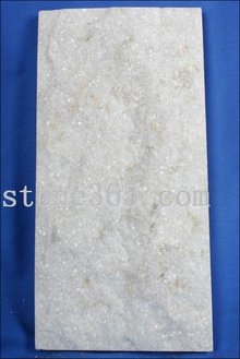 (2)从湖北、四川、宁夏、河南、江西及江苏南京等地购到的样品:呈不规则块状。全体呈白色或灰白色;表面呈粒状突起,不透明,有玻璃样光泽。质硬而重。砸断面不平齐,碎成无数细小粒状或碎片状结晶形。