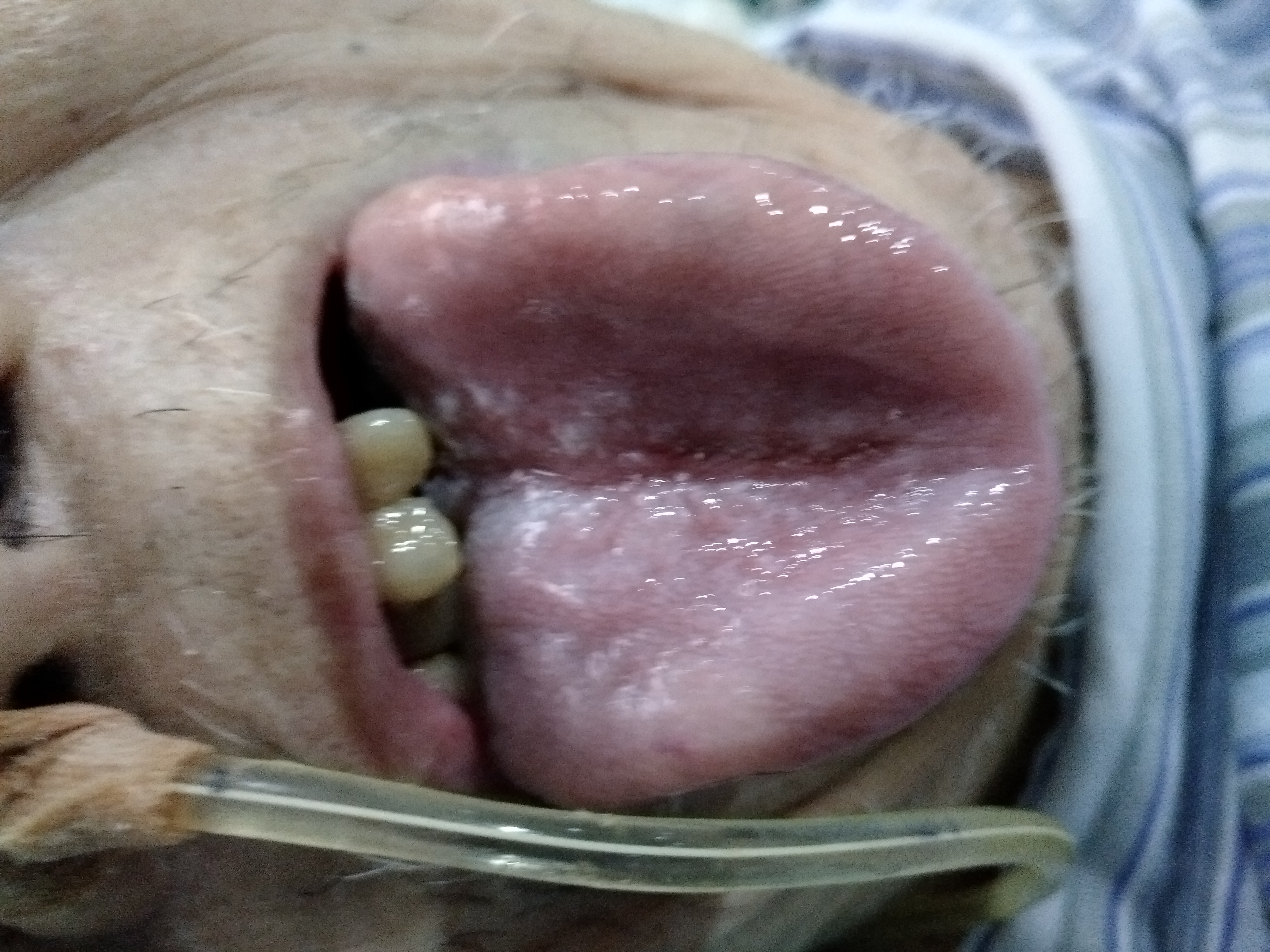 现在的舌苔,以前的没留图片,是绛红,干无光泽,有竖状不规则条纹。下图是今天早上的舌苔!