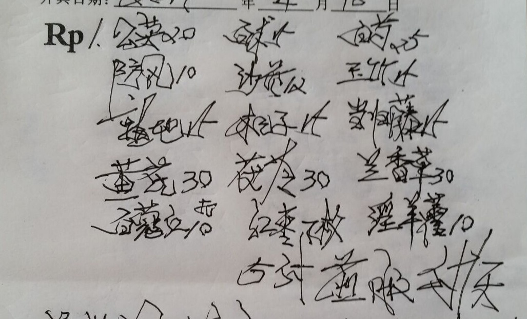 4月19日开处方的时候,我仔细请教了那位中医,把她的治疗思路、每一味药的作用都问得比较清楚了,这位中医真是耐心啊!