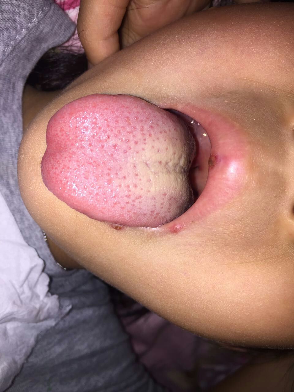 问诊知:扁桃体肿大化脓有白点,孩子喉咙痛,咽口水痛,不吃饭,牙龈肿,嘴巴起泡溃疡。