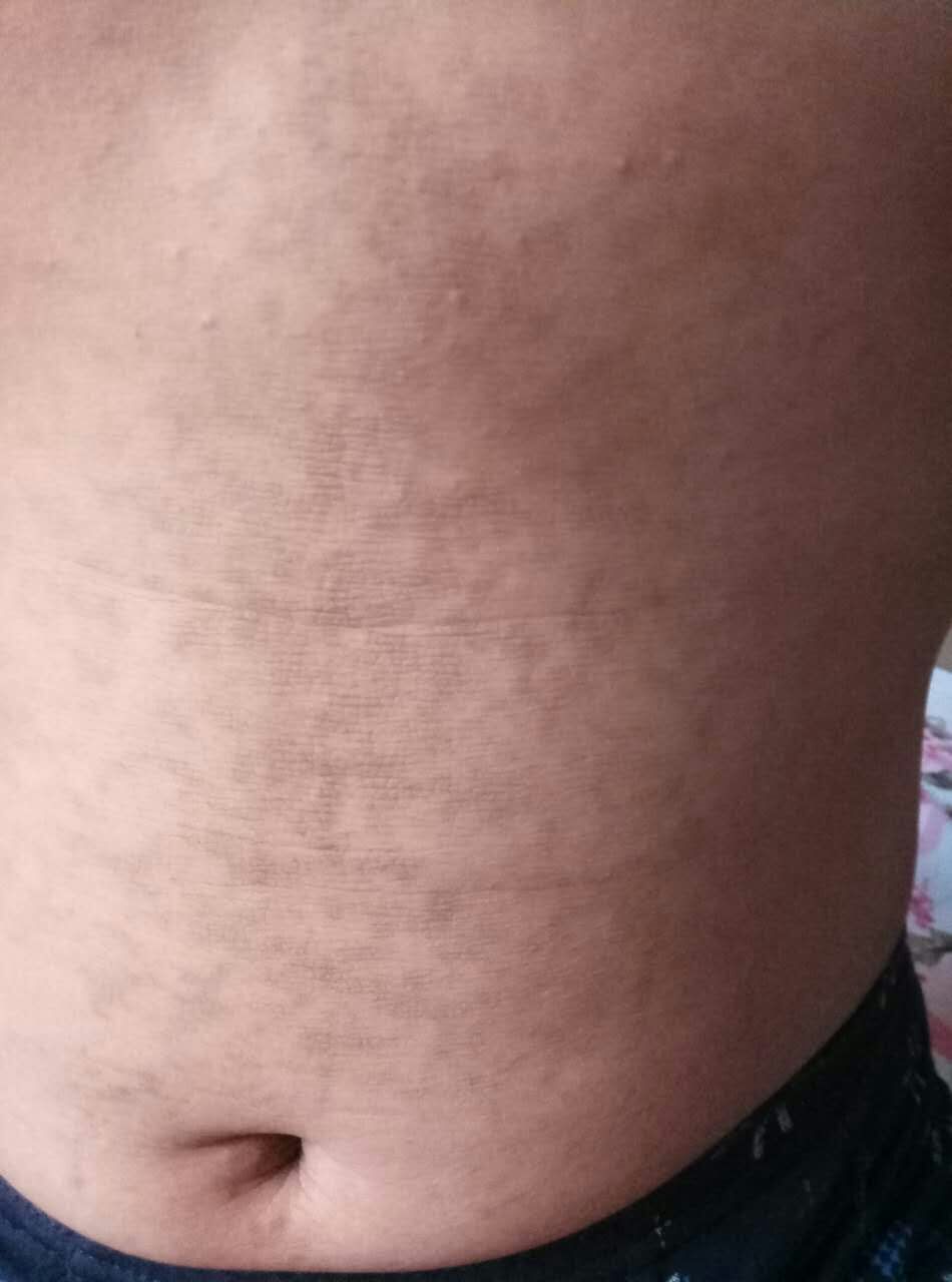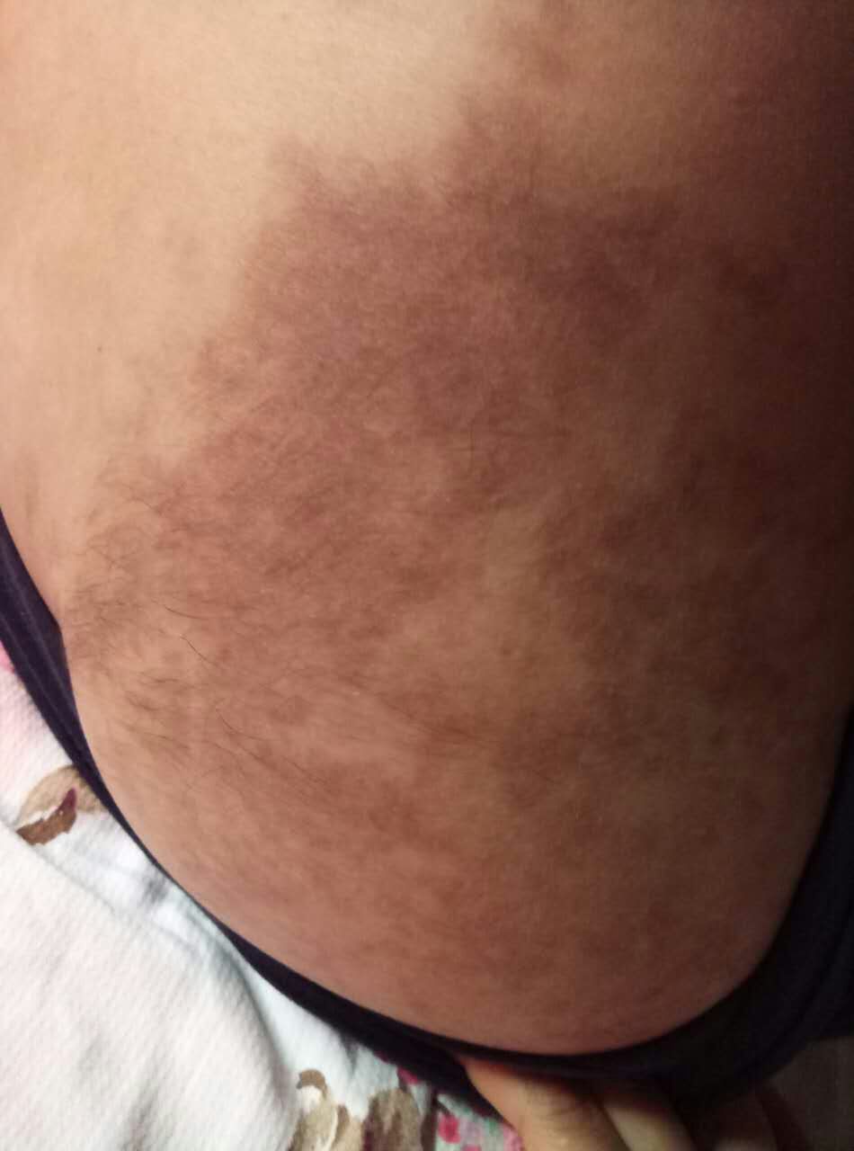 2017年5月份开始肚子上,脖子后面也开始起黄褐色斑点。