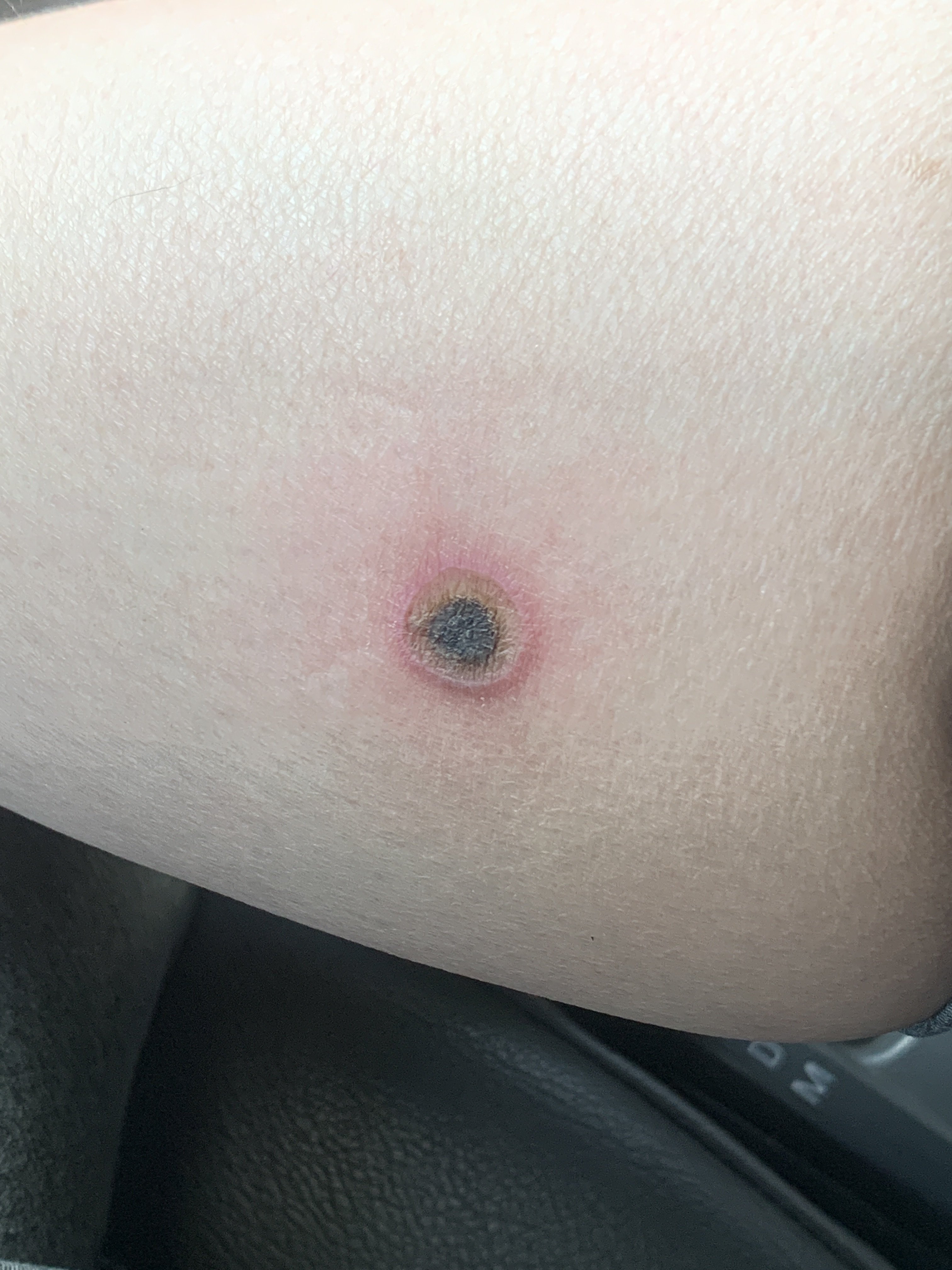 小腿肚子上长了个硬疙瘩,这个疙瘩会突出皮肤,呈暗黑色,十几年了,不疼也不痒,按之无任何异感。 我也学着楼主直接灸它,灸了5壮,第一壮疼的那个钻心啊,强忍住了,后面几壮没有啥感觉。现在是下面图片里这个样子,疙瘩已经消陷下去没有凸起了。不知道后续收脓了以后会不会消失。