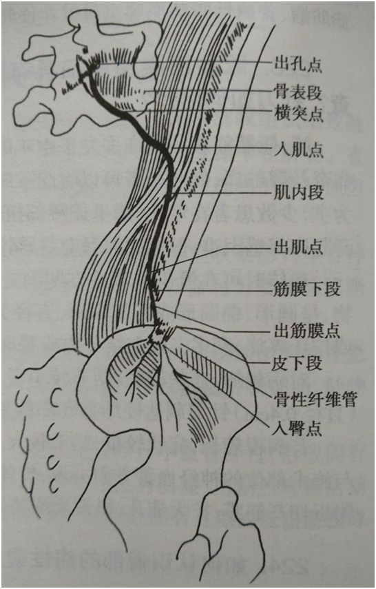 腹内斜肌和腹肌通过腱膜也起于腰椎横突, 臀上皮神经直腰一到腰三椎间孔发出,穿出横突间韧带之后,走行于腰椎1--3横突背面,并紧贴骨膜,经过横突间沟,穿过起始于横突的肌肉至背侧。