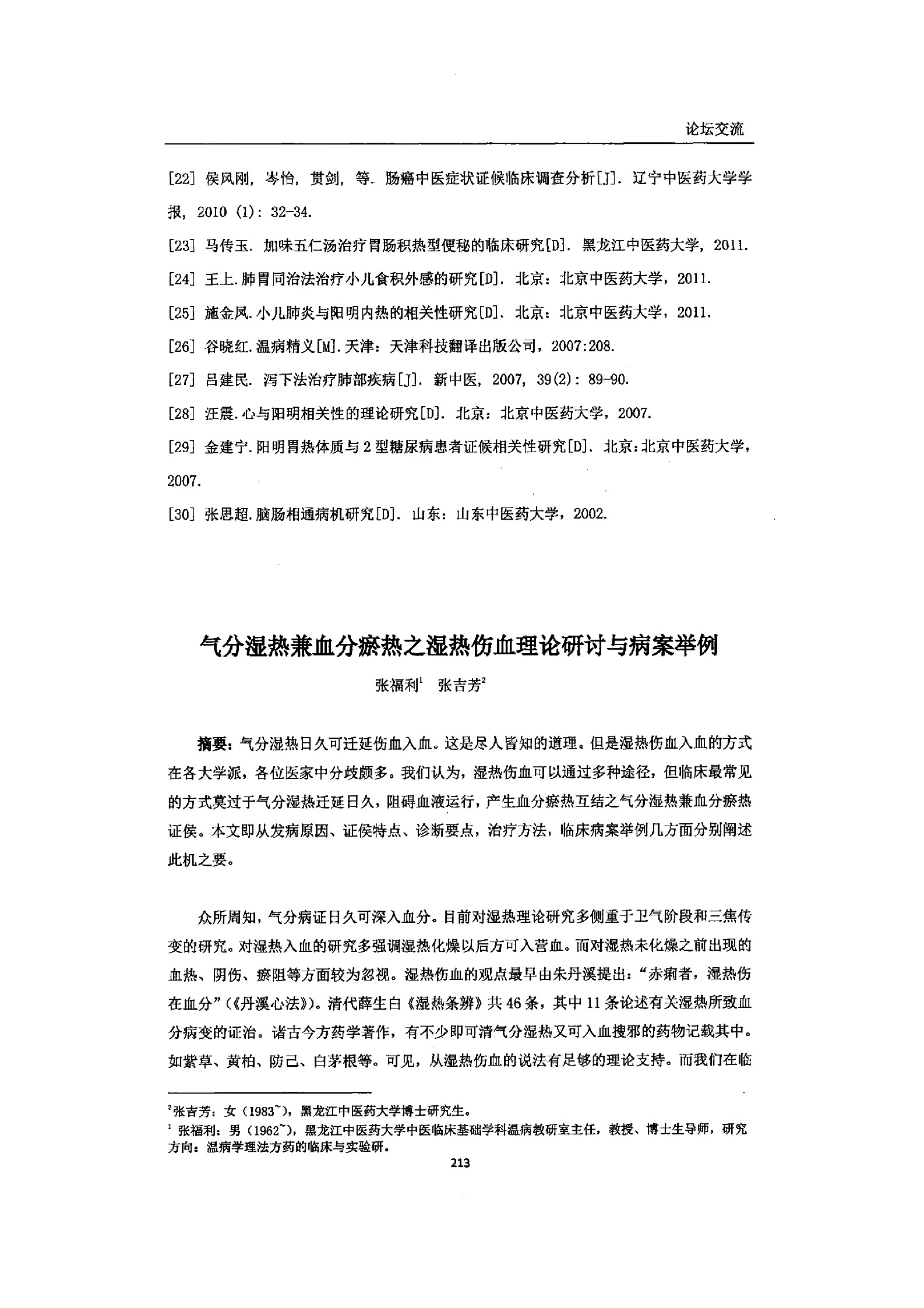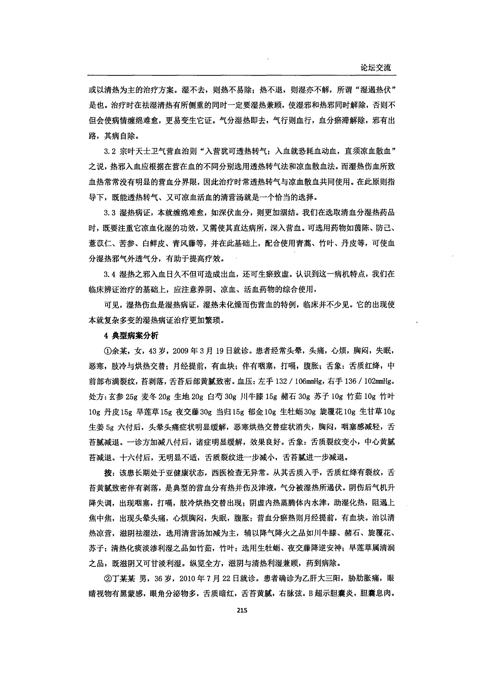 还有一篇论述湿热伤血理论及其案例的论文,一并传上来供参考:
