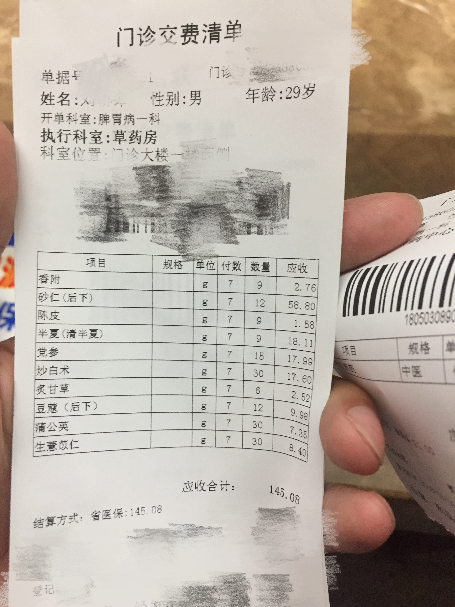 最近在看中医,开了些调理脾胃的药,刚喝完一周的药,