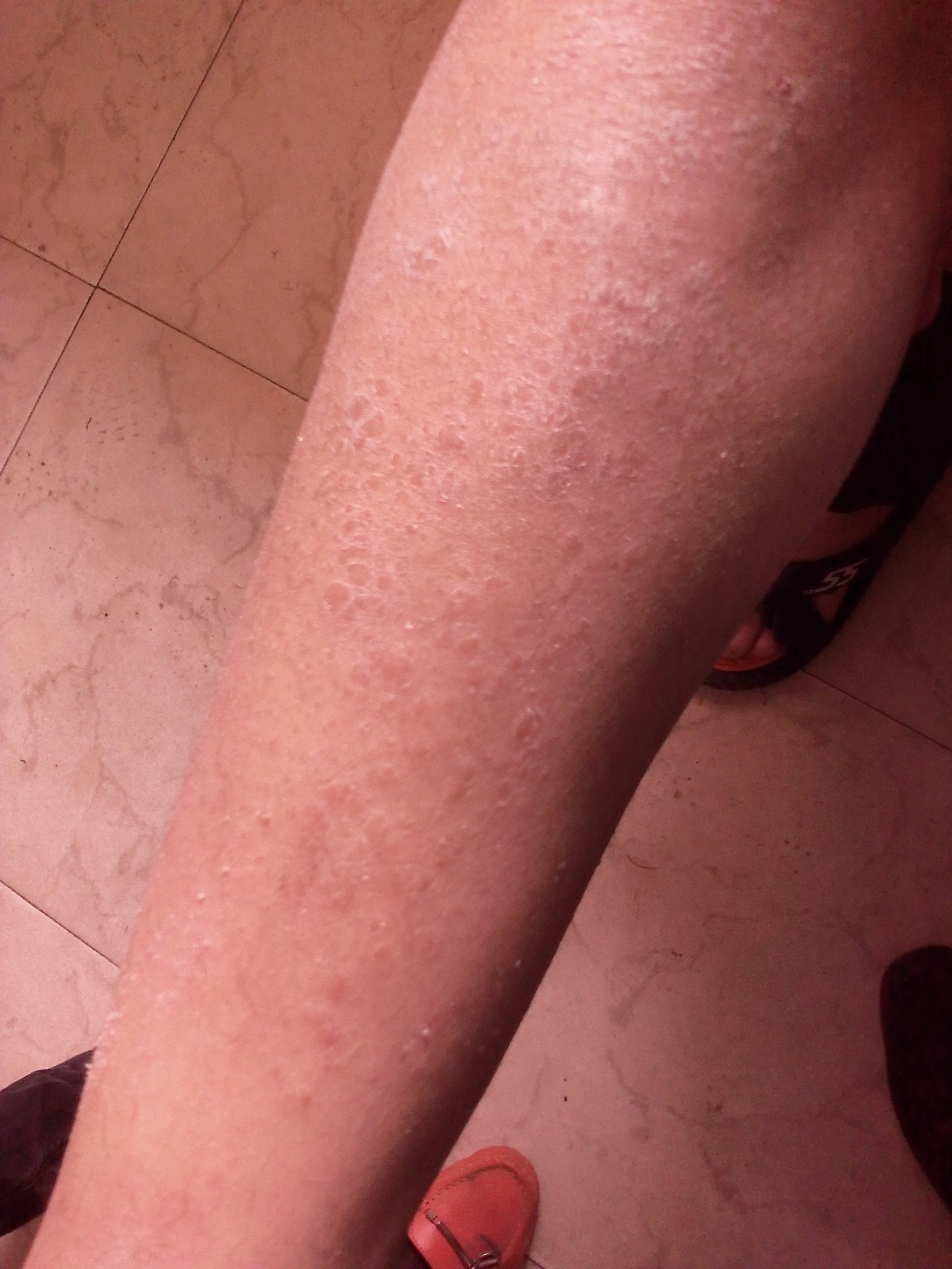 近日,一患者前来就医,好像有点印象。叙前年因扁平苔藓就医,因路途遥远,携带物品较多,愿讨一方,余当时把握性不大,写好后付与患者,收费30元。患者服药十剂,难耐奇苦,未继续服用,病情逐渐缓解。依稀记得是三妙散加味。 如图治疗前 治疗后昨日拍摄,