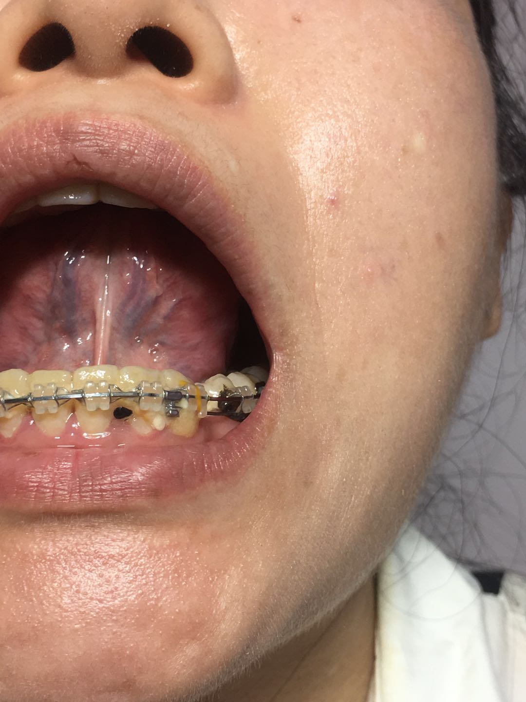 印堂有块斑,从咽炎发作以来的三四年里,这斑越长越宽,现在最想解决的是夜里和早上咽干的问题,现在除了吃素,其它的吃了都加重,吃肉便秘,吃素便稀。大便一直是豆瓣酱一样的颜色。